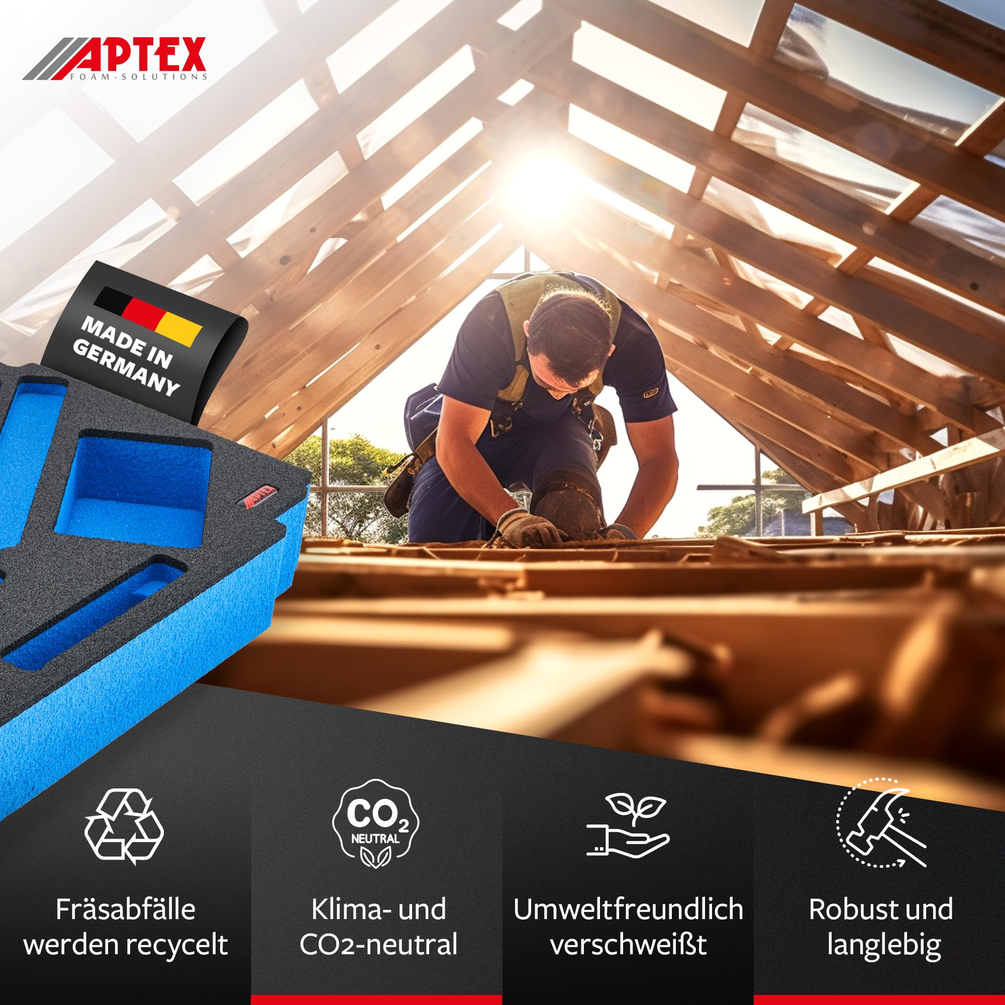 Jednym z głównych atutów tej wkładki jest jej precyzyjne dopasowanie do konkretnego modelu piły, co sprawia, że urządzenie jest stabilnie umieszczone wewnątrz MakPac rozm. 2-3 i nie przemieszcza się podczas przemieszczania. Dodatkowo, wkładka posiada specjalne wyprofilowania na akcesoria i dodatkowe elementy, co ułatwia organizację miejsca pracy i szybkie znalezienie potrzebnych narzędzi.
