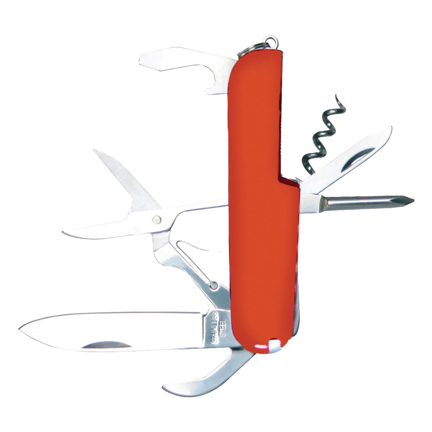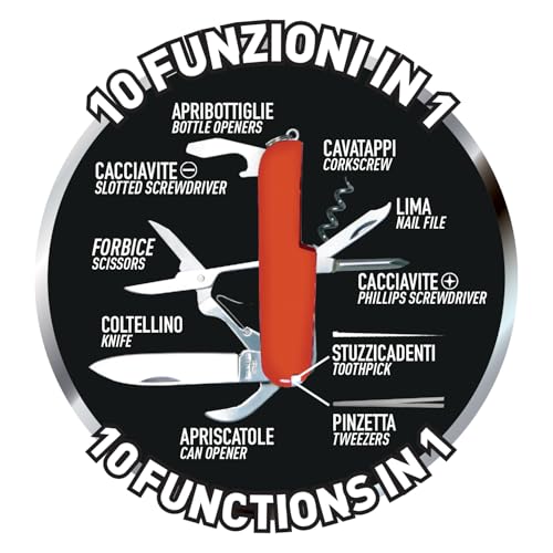 10 funkcji to:: 10 funkcji to: otwieracz do butelek, korkociąg, pilnik, śrubokręt krzyżakowy, dziurkacz do skóry, środek czyszczący, otwieracz do puszek, nóż, nożyczki, płaski śrubokręt.