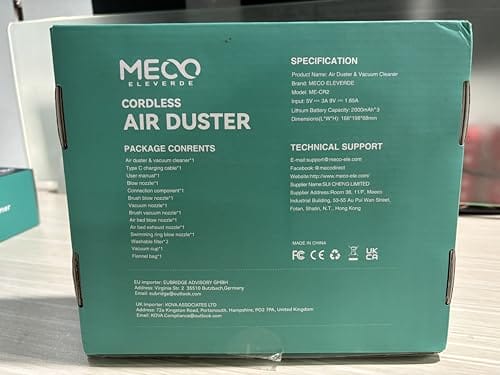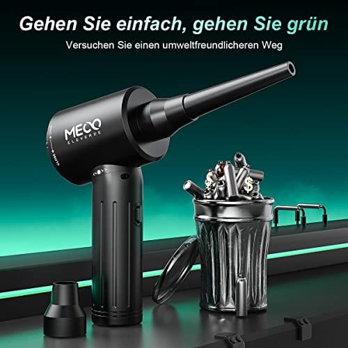 - 【Schnelles Aufladen und hohe Wiederverwendbarkeit】 MECO CR2 air duster unterstützt Typ-C-Schnellladung und die Ladezeit wird auf 2 Stunden verkürzt. Im Vergleich zu Druckluftbehältern ist our staubbläser umweltfreundlicher und effizienter. Der eingebaute 7500-AMH-Akku kann tausende Male wiederverwendet werden. Diese perfekte Alternative spart Ihnen Geld und Mühe zugleich.