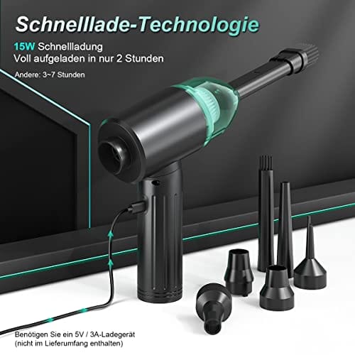 - ✔️【Tipp】: Wenn Sie die Blasfunktion verwenden, entfernen Sie den Staubbehälter, damit die Blaskraft größer ist. ★Hinweis: Es wird nicht empfohlen, einen Computer zum Aufladen zu verwenden, da das Produkt eine große Leistung hat und die Ladeeffizienz des PCs abnimmt.Darüber hinaus wird dieses Produkt nicht mit einem Netzteil geliefert.【Notiz: Um eine optimale Blasleistung zu erzielen, entfernen Sie bitte den Staubbecher und den HEPA-Filter, bevor Sie den Blasmodus verwenden.】