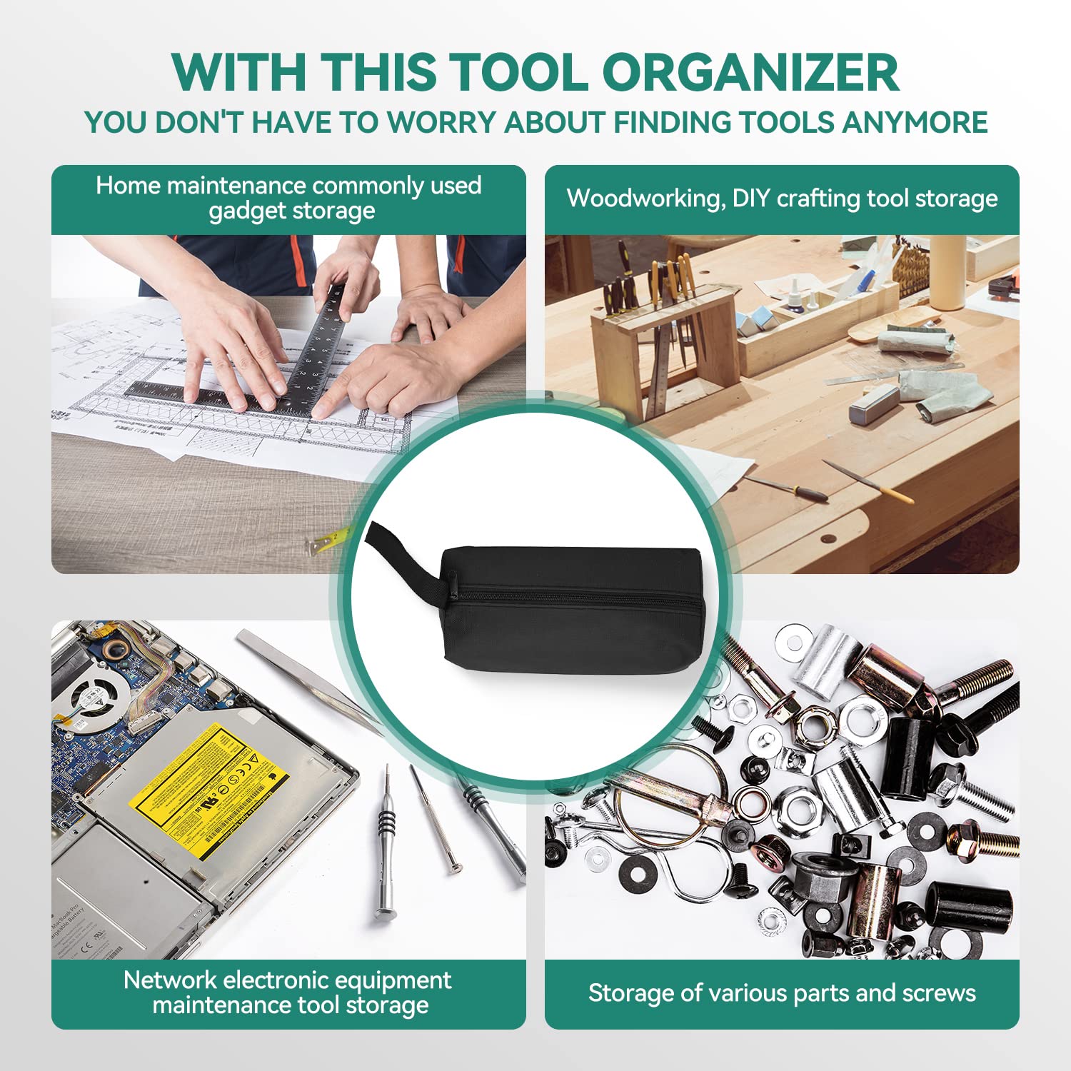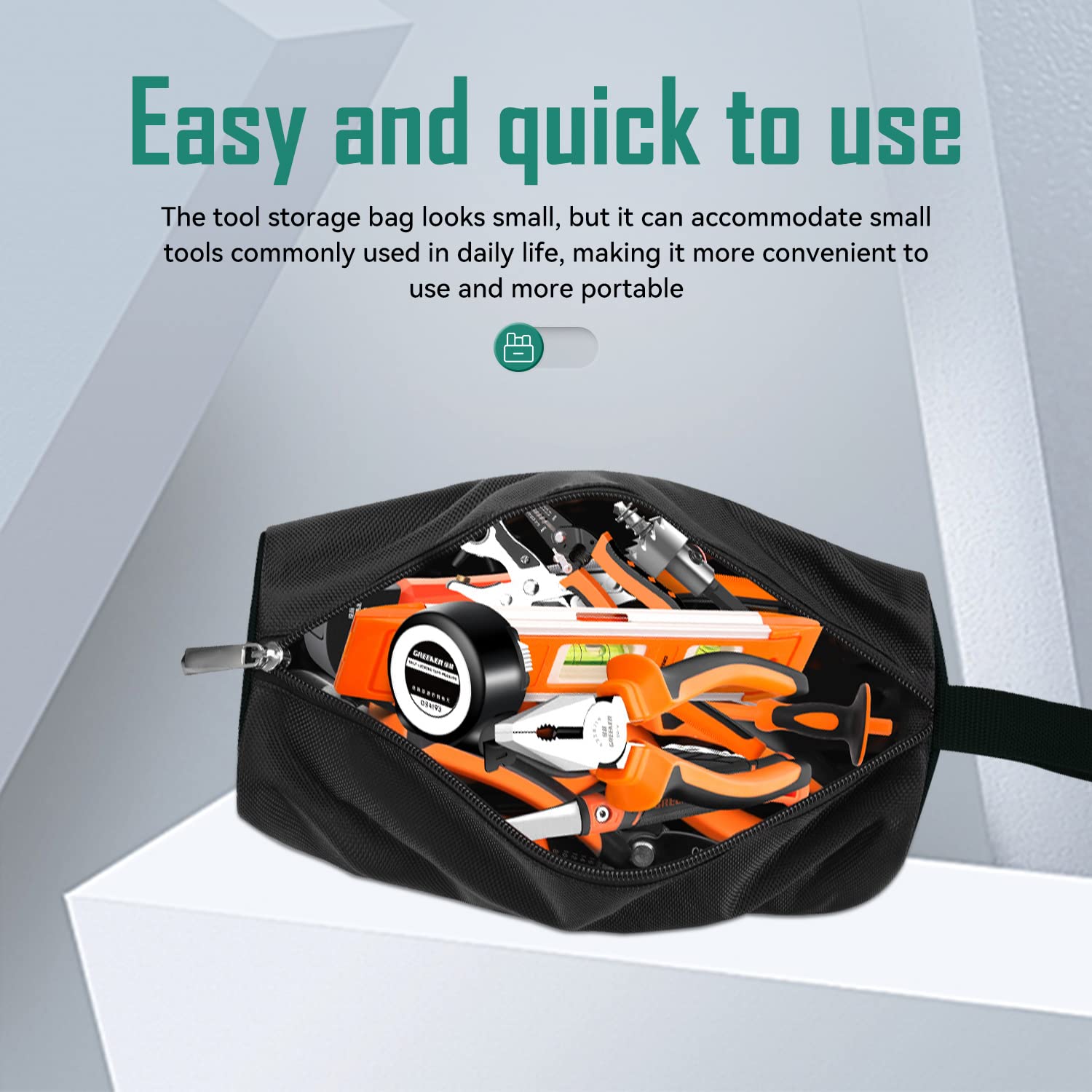 ✅ Unikalna przenośna konstrukcja:: Unikalna przenośna konstrukcja: torba na narzędzia jest wyposażona w uchwyt, możesz ją powiesić w dowolnym miejscu, nie zajmuje miejsca, gdy jej używasz, może zaoszczędzić miejsce podczas pracy i jest wygodna do przenoszenia i jest dobrym pomocnikiem w przechowywaniu narzędzi.