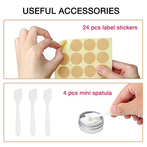 Puste pojemniki na kosmetyki, 3 rozmiary, aluminiowe, blaszane słoiki z zakręcanymi pokrywkami, etykietami i mini szpatułką, pojemniki na próbki balsamu do ust, tworzenia świec, kremu, próbki,