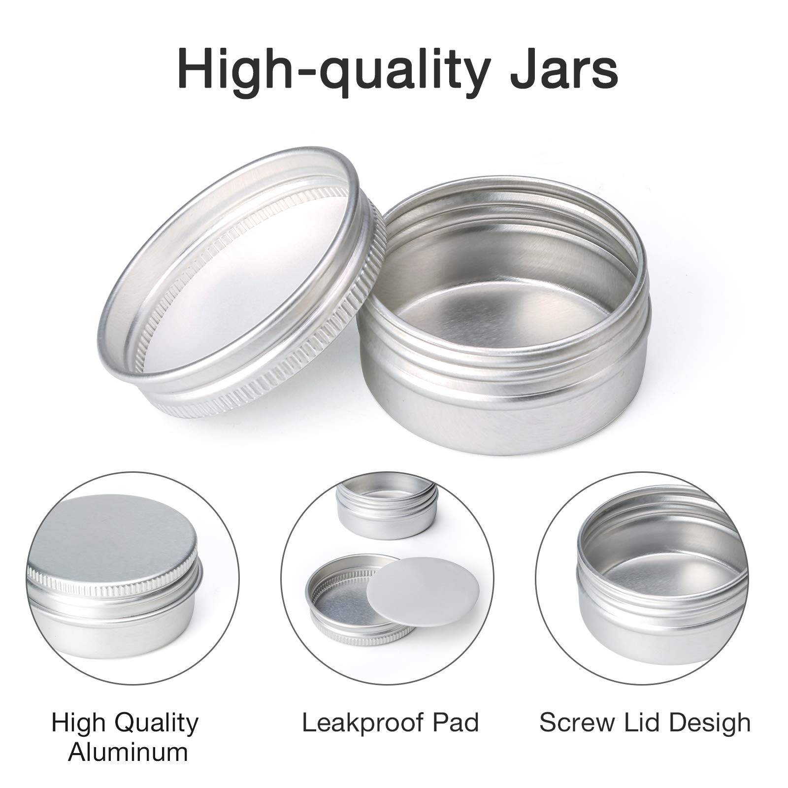 ✅ Szczelność: te aluminiowe: Szczelność: te aluminiowe słoiki mają zakrętkę i szczelną piankową podkładkę na górze słoików z kremem, która może zapewnić dobre uszczelnienie i zapobiec wyciekom. Konstrukcja zakręcanej pokrywy ułatwia otwieranie i zamykanie.