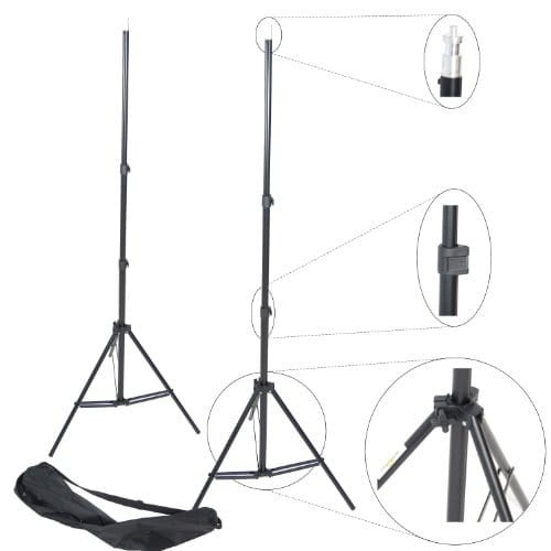 W zestawie znajdują się 2 statywy do lamp DynaSun W803 oraz 2 torby z zamkiem błyskawicznym. Torby są idealne do przechowywania i transportu statywów, zapewniając ochronę przed uszkodzeniami i zarysowaniami.