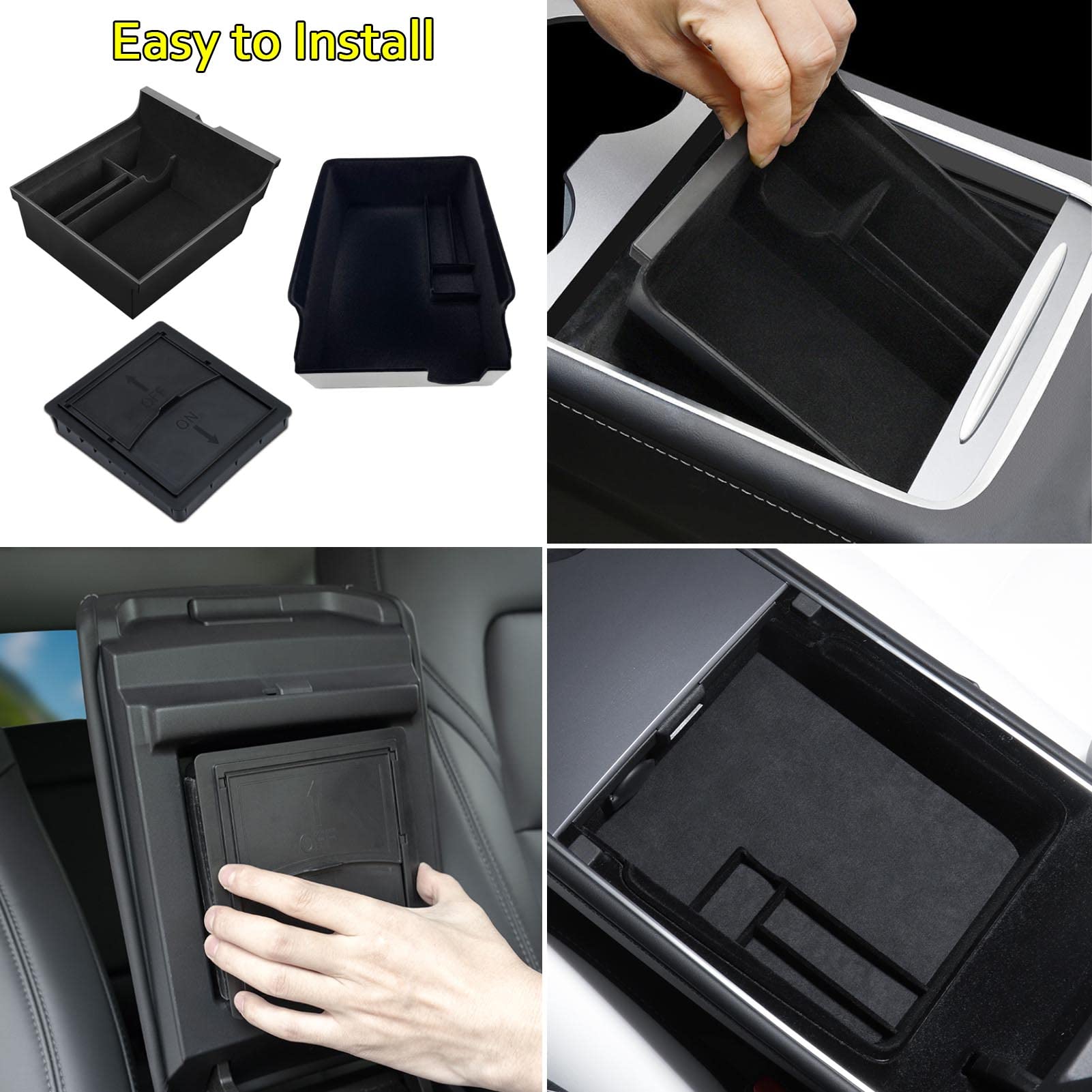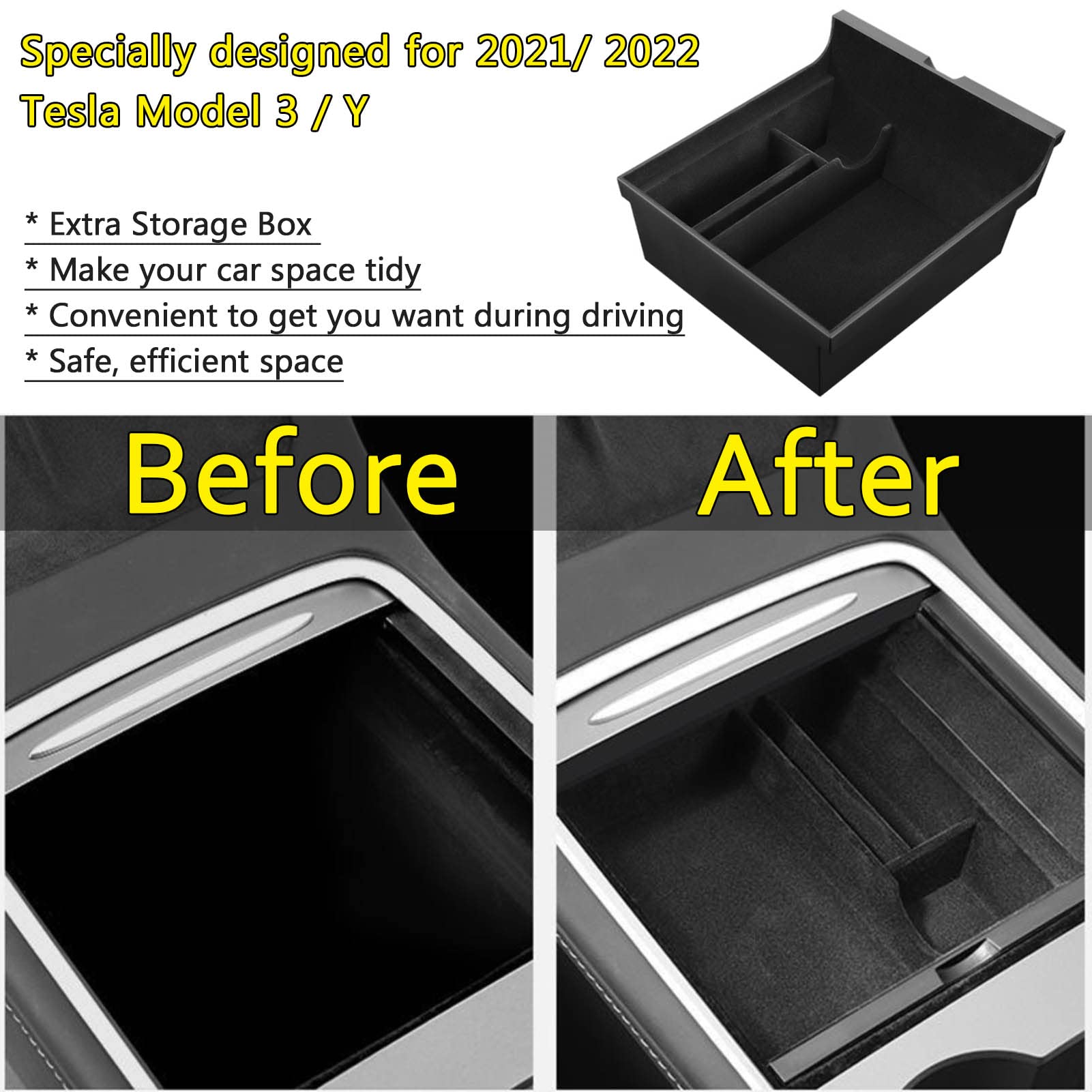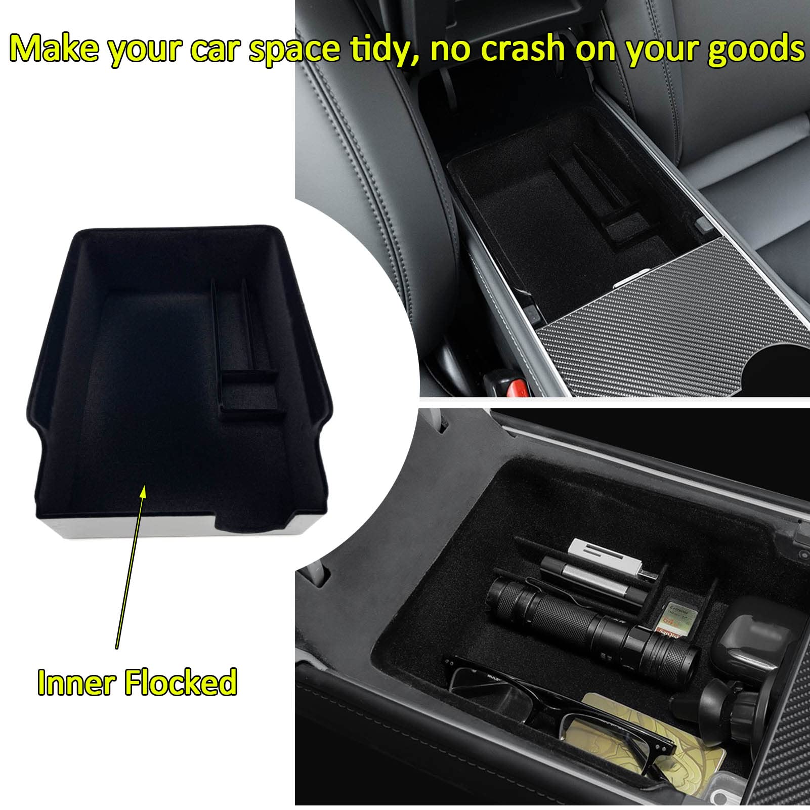 [3 Pack] Taca na organizery w konsoli środkowej Flokowane pudełko do przechowywania Tesla Model 3 Y 2021 2022 2023 Akcesoria, podłokietnik Ukryta szuf