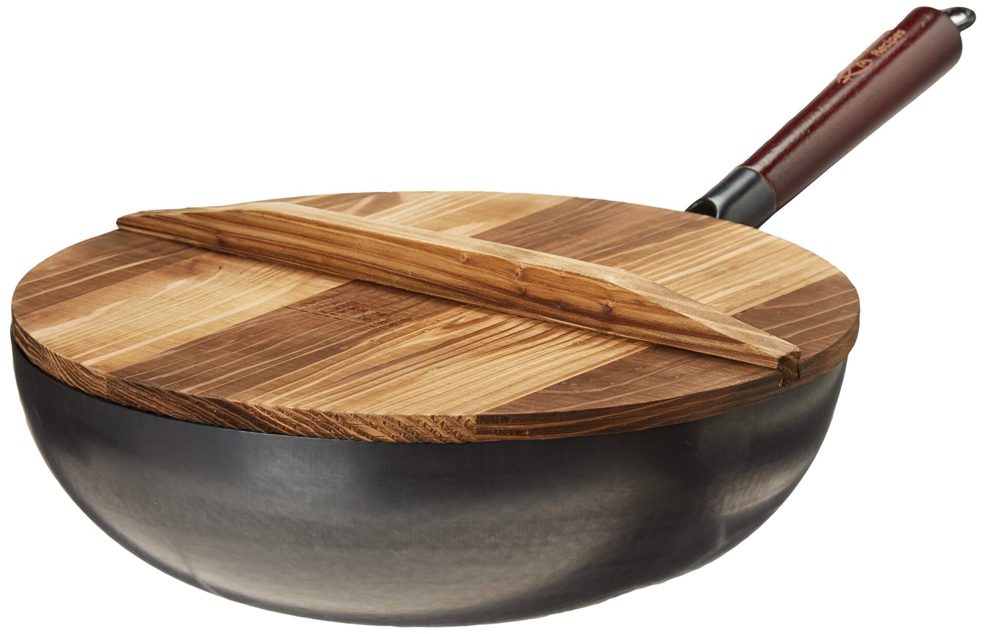 Souped Up Recipes Wok ze stali węglowej do kuchenek elektrycznych, indukcyjnych i gazowych (pokrywa, szpatułka i instrukcja obsługi w zestawie wideo)