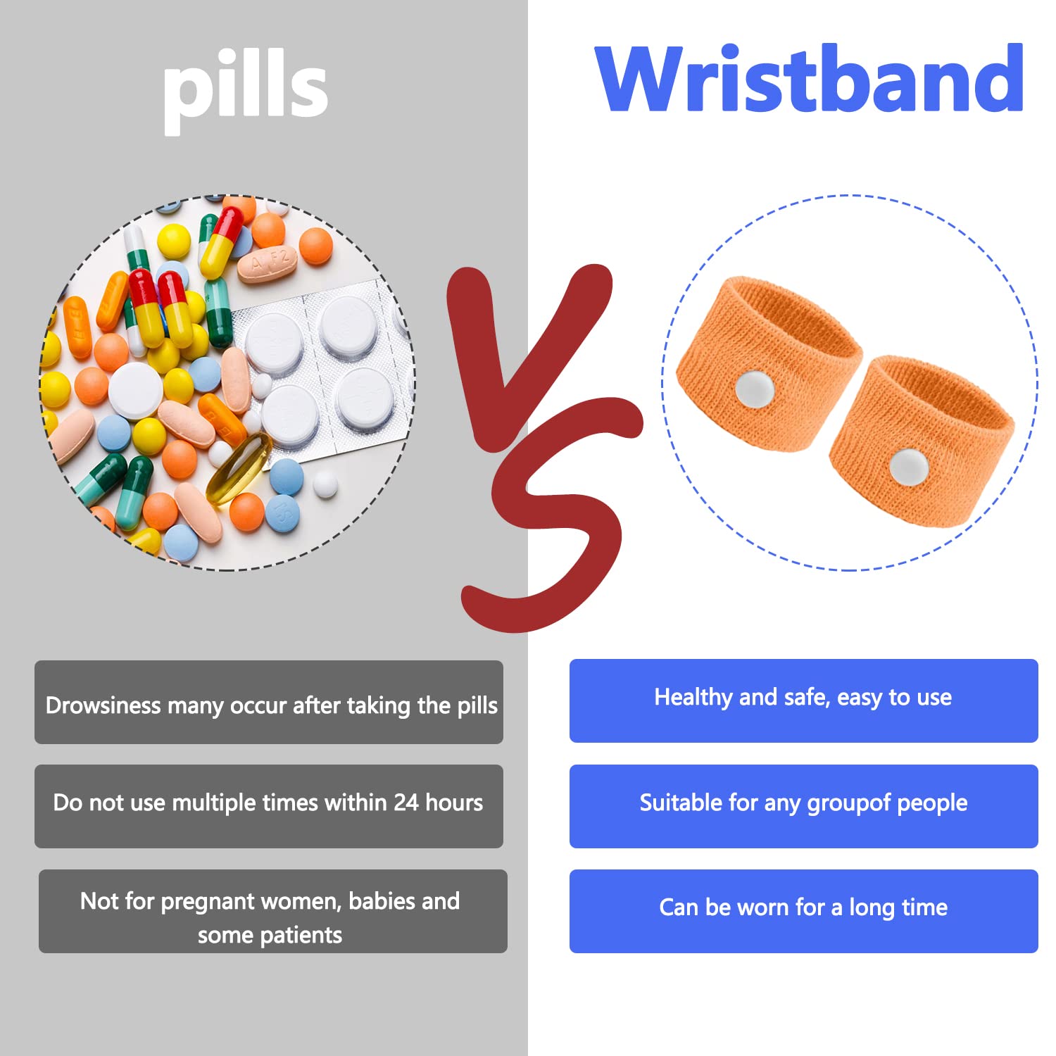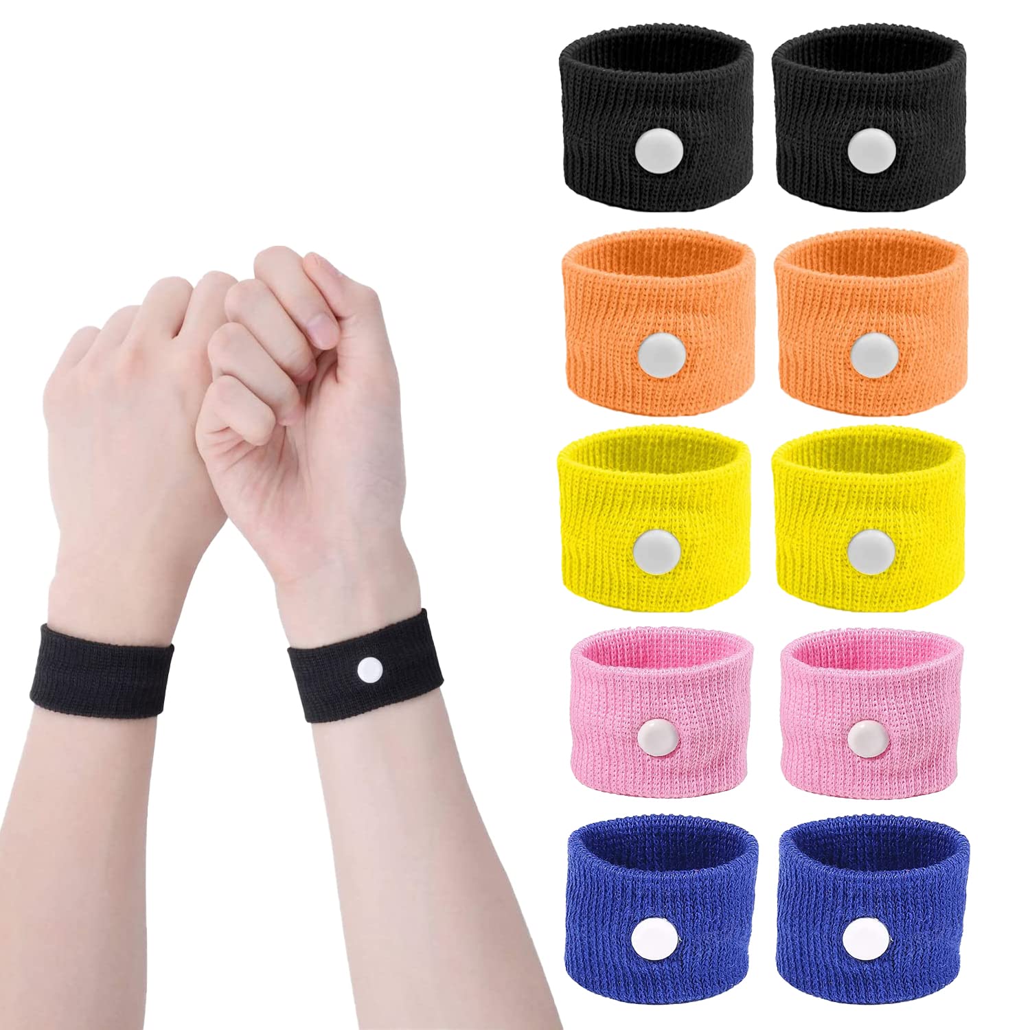 5 par Bransoletka akupresury przeciw nudnościom podróżna opaska przeciwmdłościowa bransoletki przeciw chorobie lokomocyjnej opaski na chorobę – FIBOUND Akupresura – Materiał poliestrowy, bez skutków ubocznych