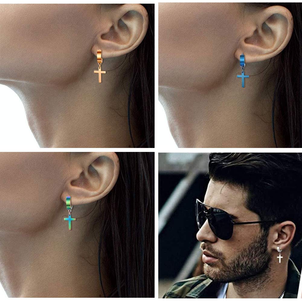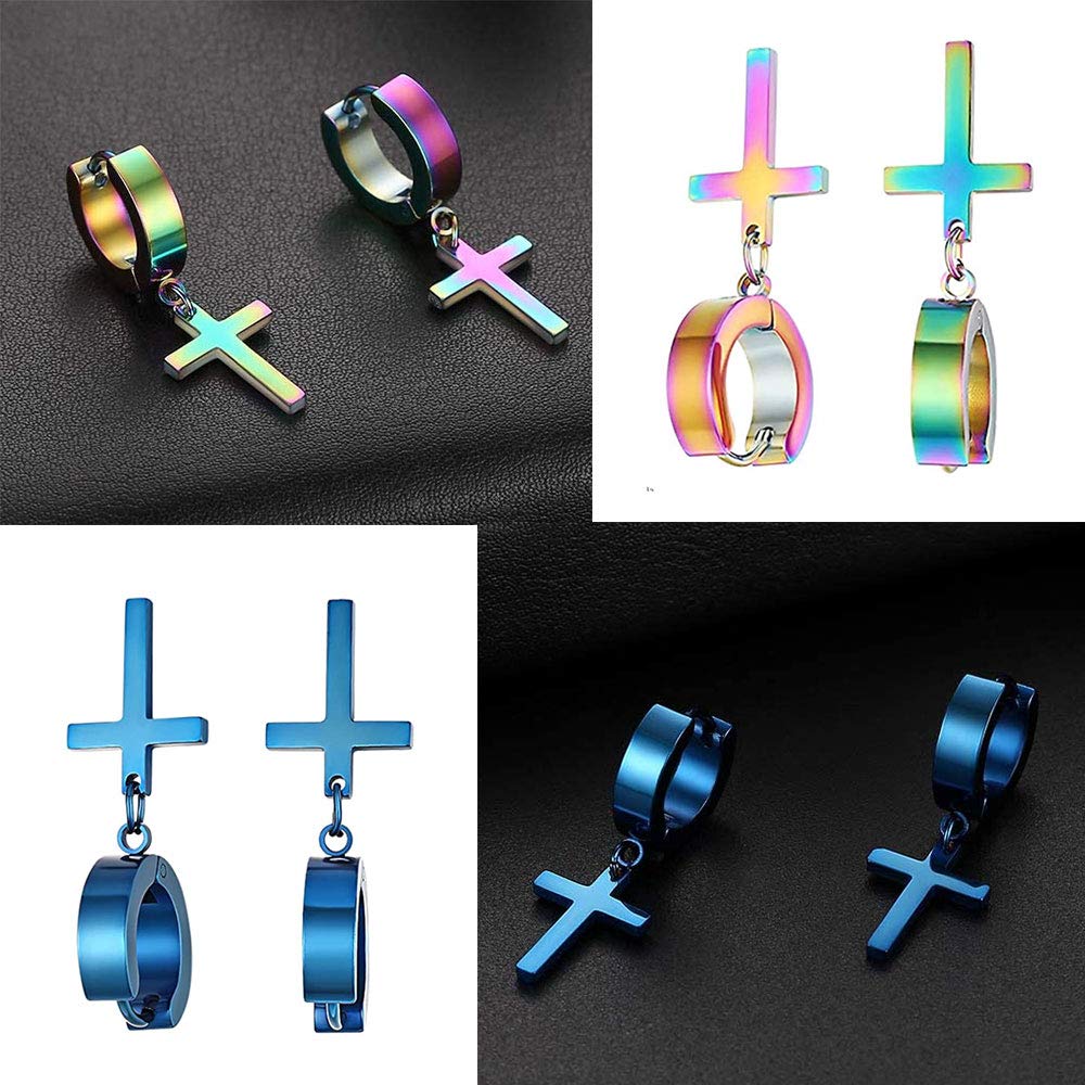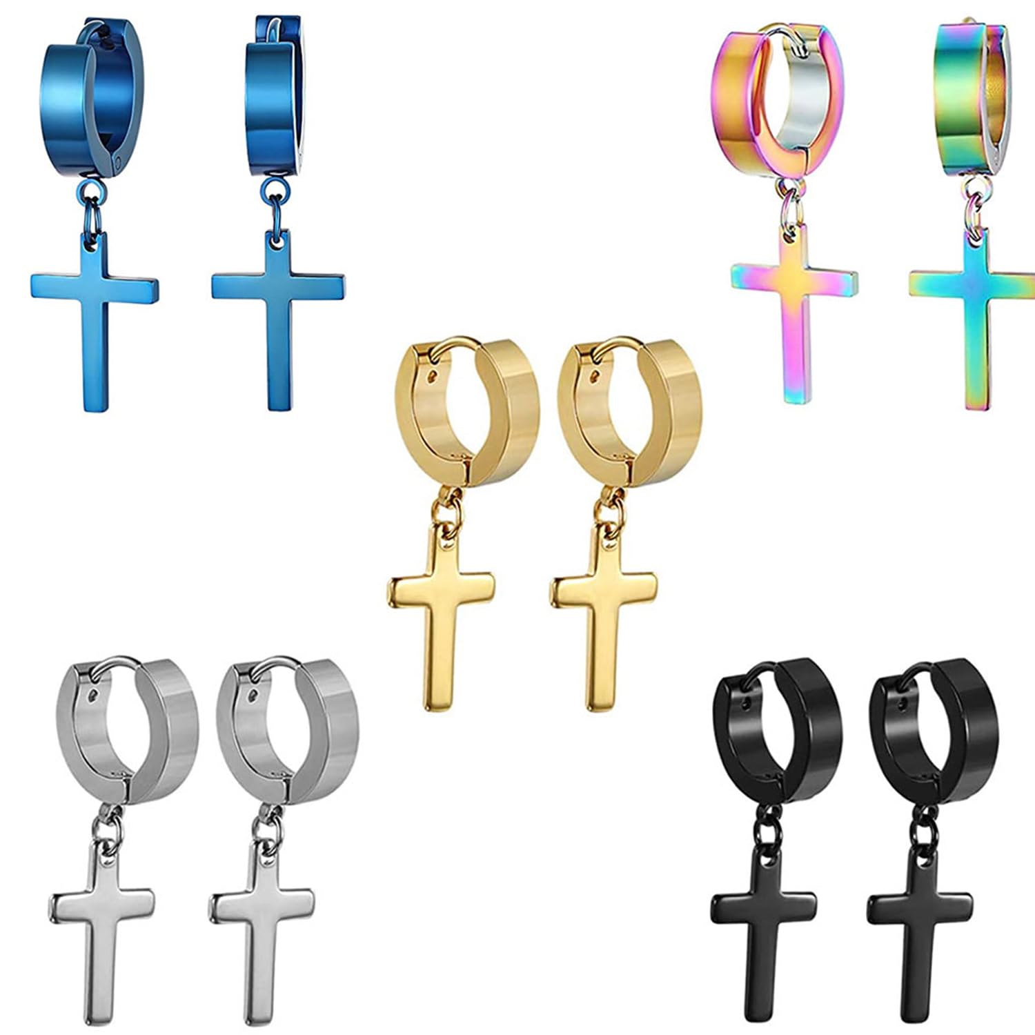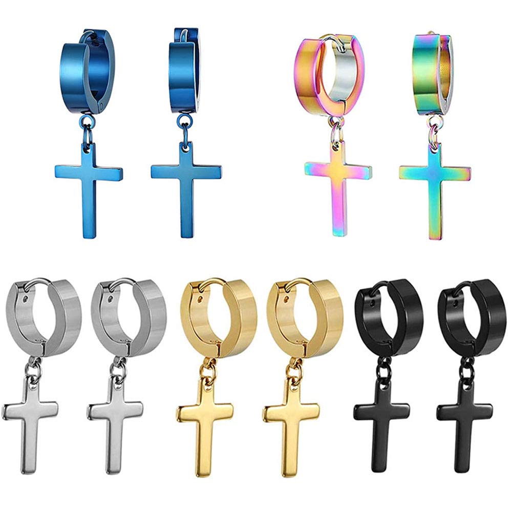 5 par kolczyków krzyżowych, kolczyki krzyżowe, kolczyki ze stali nierdzewnej, czarne, złote, niebieskie, srebrne, odpowiednie dla kobiet, mężczyzn, unisex, przyjęcie urodzinowe, rocznica, impreza
