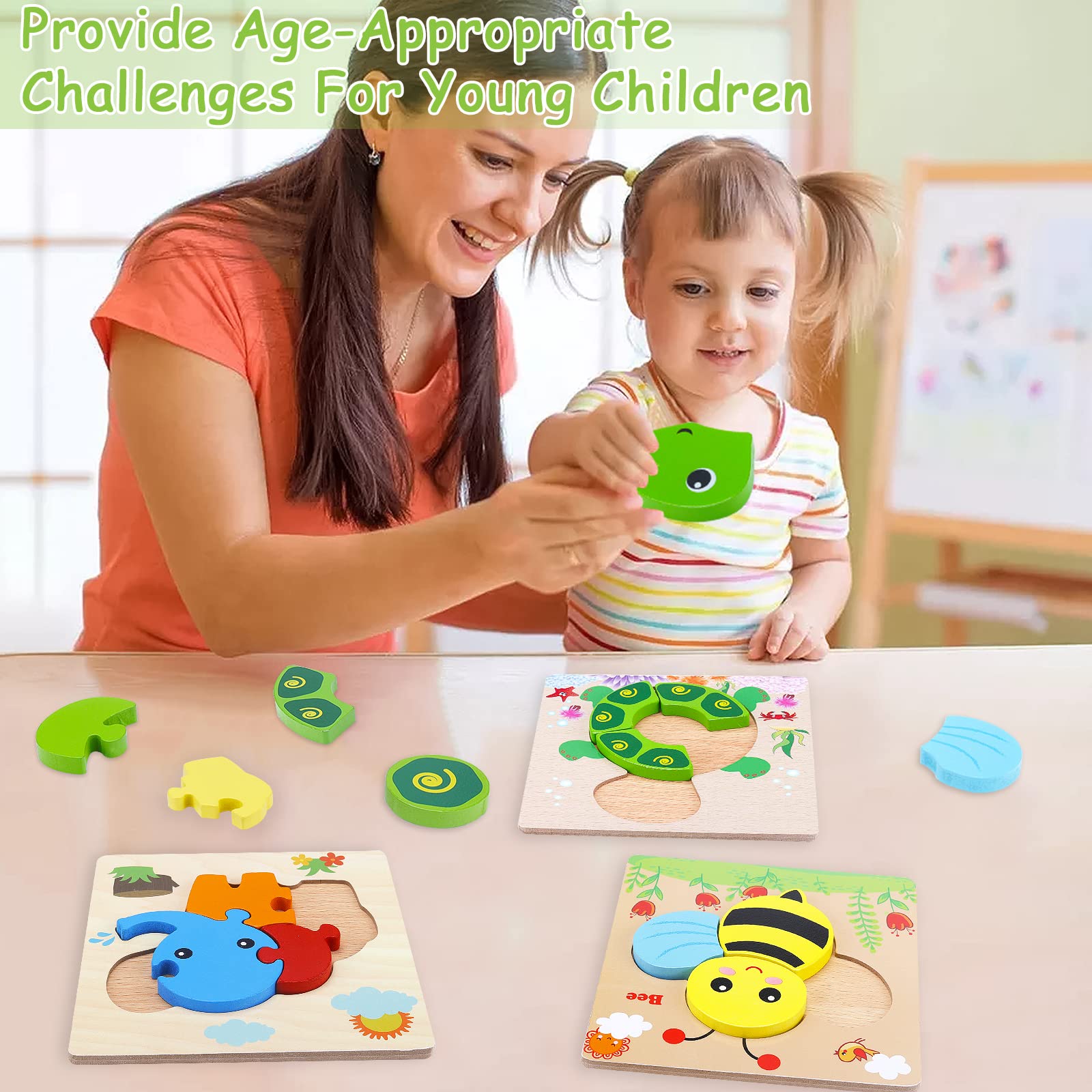 Każde z puzzli zostało starannie zaprojektowane z myślą o rozwijaniu zdolności motorycznych, logicznego myślenia oraz kreatywności u dzieci. Wykonane z naturalnego drewna, są bezpieczne dla najmłodszych, a ich gładkie krawędzie eliminują ryzyko skaleczeń. Kolorowe elementy przyciągają uwagę dzieci, a różnorodność kształtów stymuluje ich wyobraźnię.