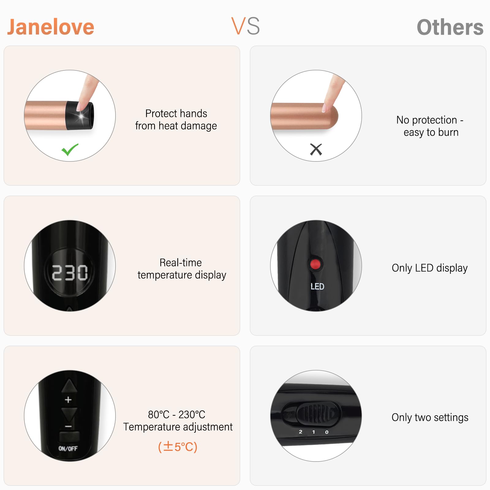 Napisz pierwszą opinię o „Lokówka do włosów 9-32 mm z różnymi końcówkami – janelove 6 w 1, złota”