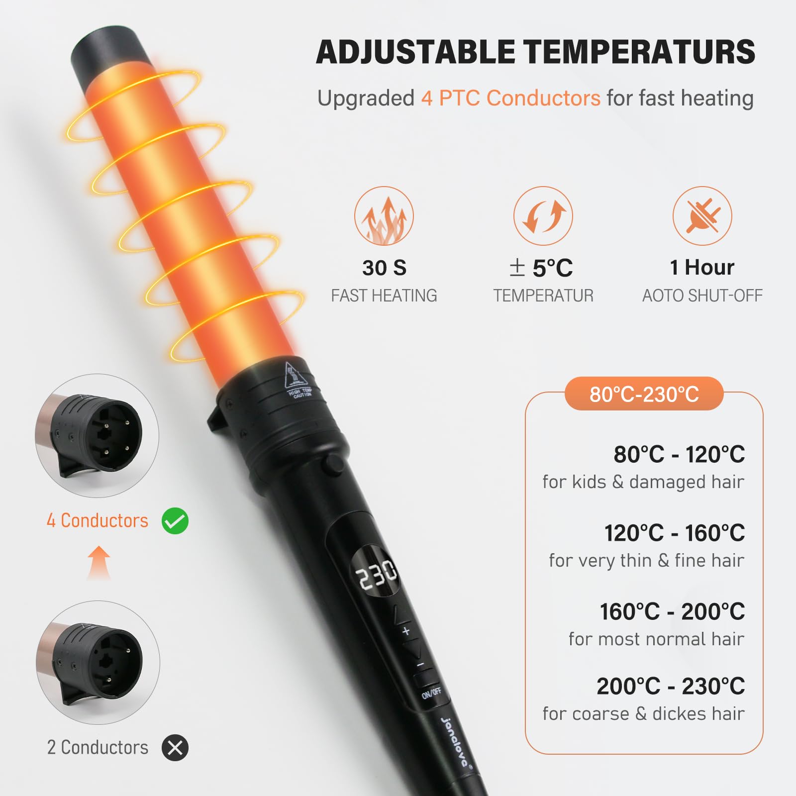 Lokówka do włosów 9-32 mm z różnymi końcówkami – janelove 6 w 1 to innowacyjne narzędzie do stylizacji włosów, które zapewnia szeroki zakres możliwości kreowania różnych fryzur. Dzięki różnym końcówkom, użytkownik może uzyskać zarówno małe loki idealne do krótkich włosów, jak i duże loki, które dodadzą objętości i efektownego wyglądu.