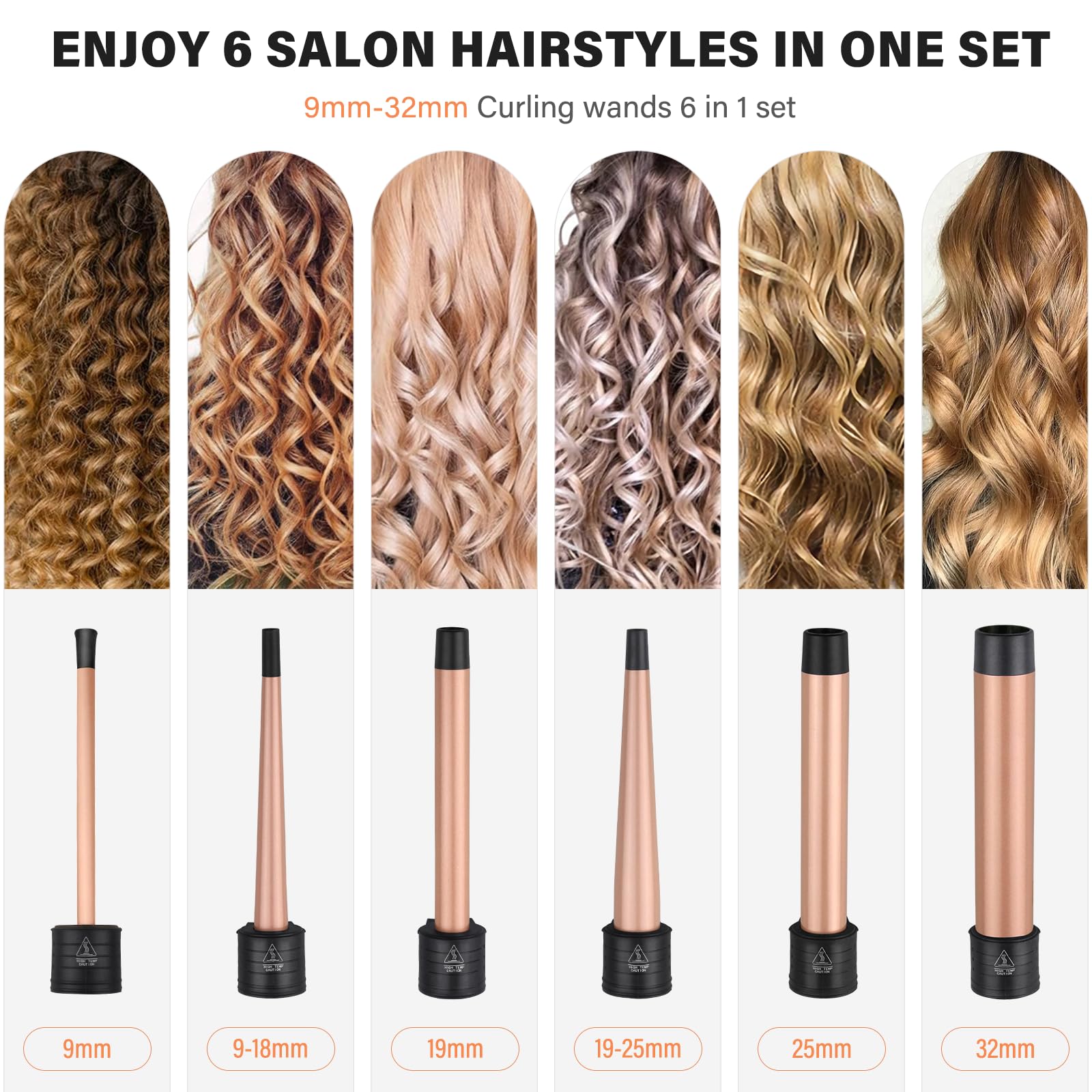 Lokówka do włosów 9-32 mm z różnymi końcówkami – janelove 6 w 1, złota