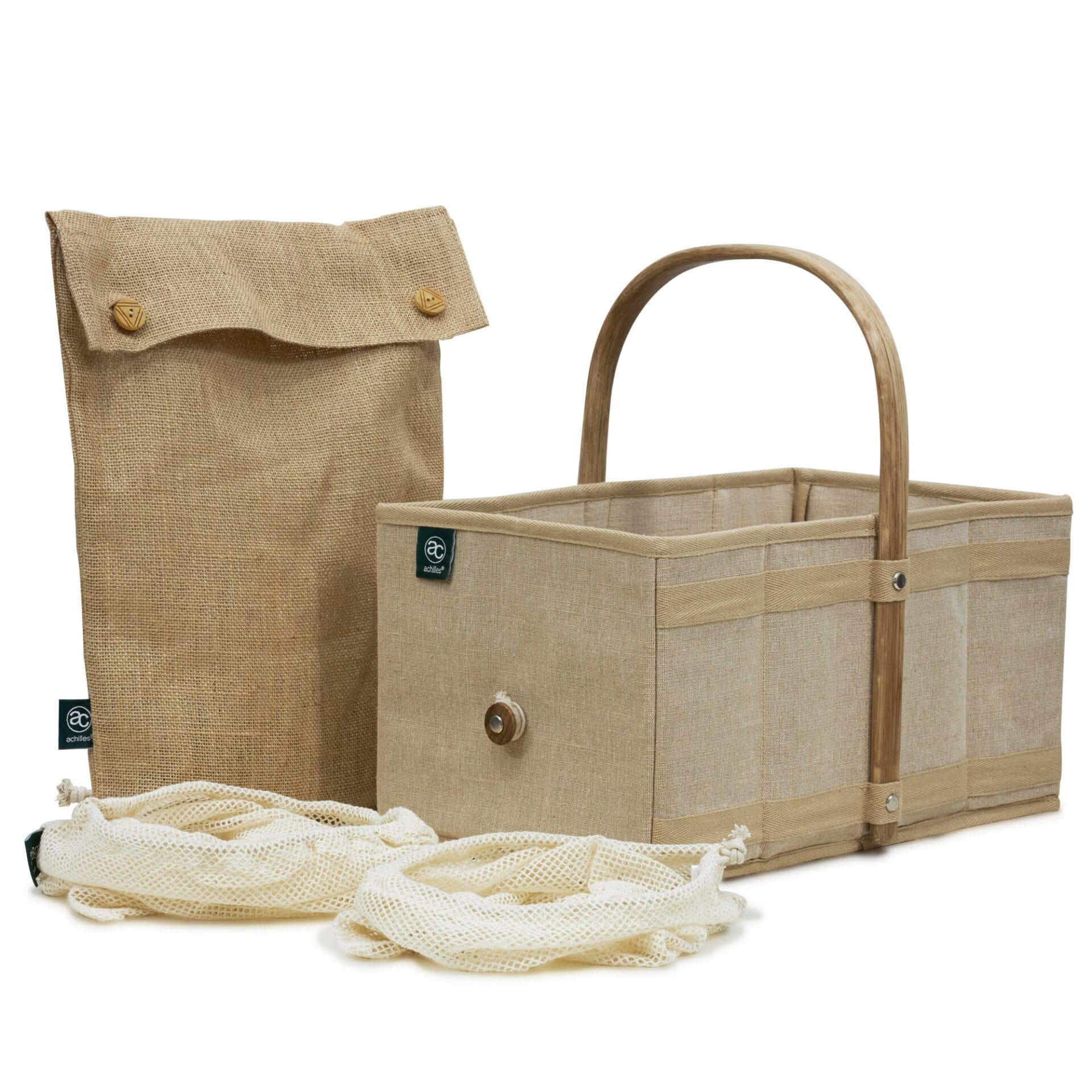 ✅ Przyjazny dla środowiska:: Przyjazny dla środowiska: Korpus (100% len) koszu na zakupy składa się ze zrównoważonej mieszanki juty i bawełny, podczas gdy drewniany uchwyt wykonany jest z szybko rosnącej trzciny. Kosz na zakupy jest tym samym stylowym, przyjaznym dla środowiska towarzyszem.