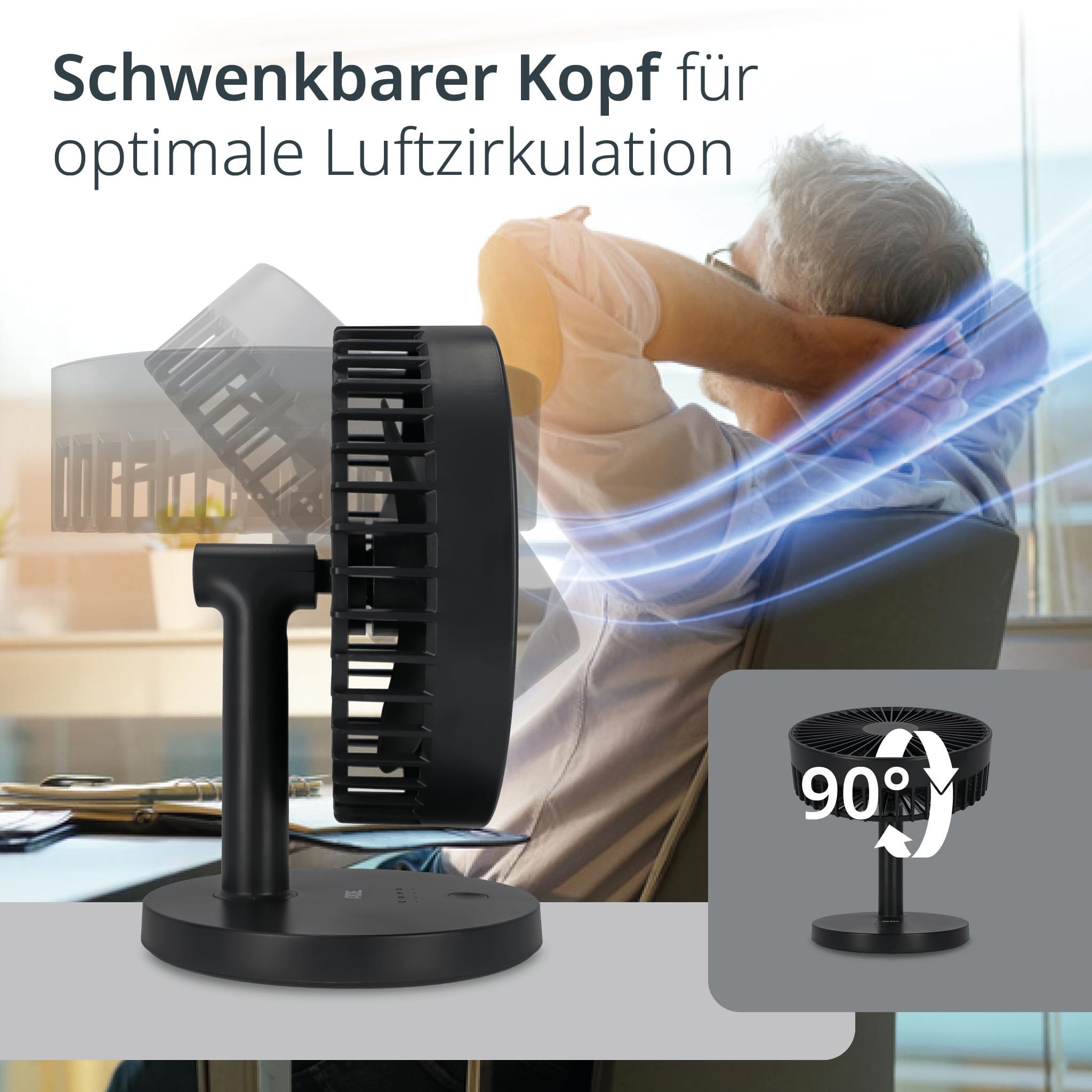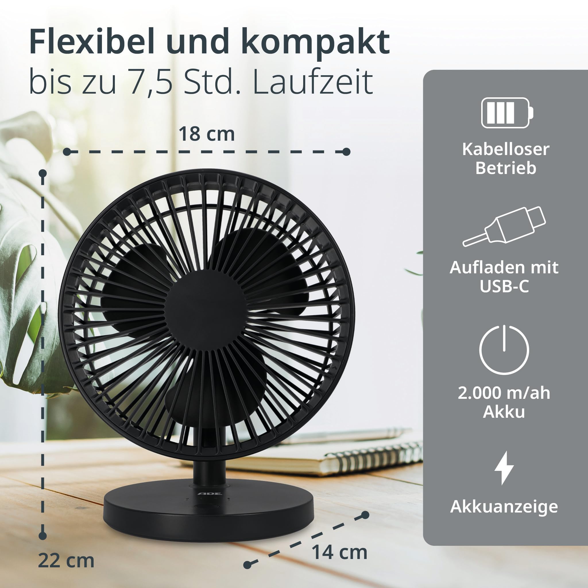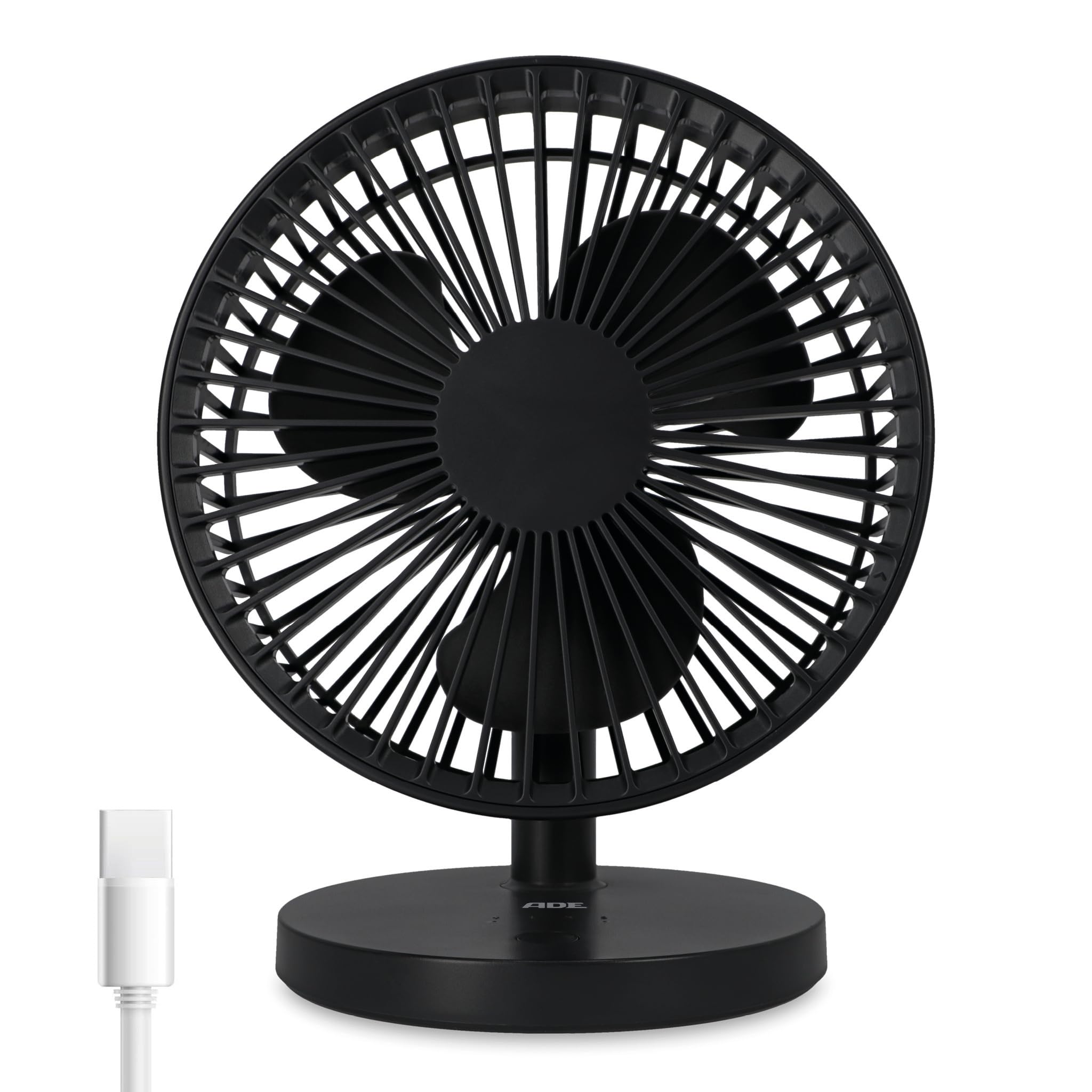 ADE Bardzo cichy wentylator stołowy USB, 3 stopnie pracy, akumulator do 7,5 h, 2000 mAh, kąt nachylenia 90°, lekki i elastyczny, antracyt