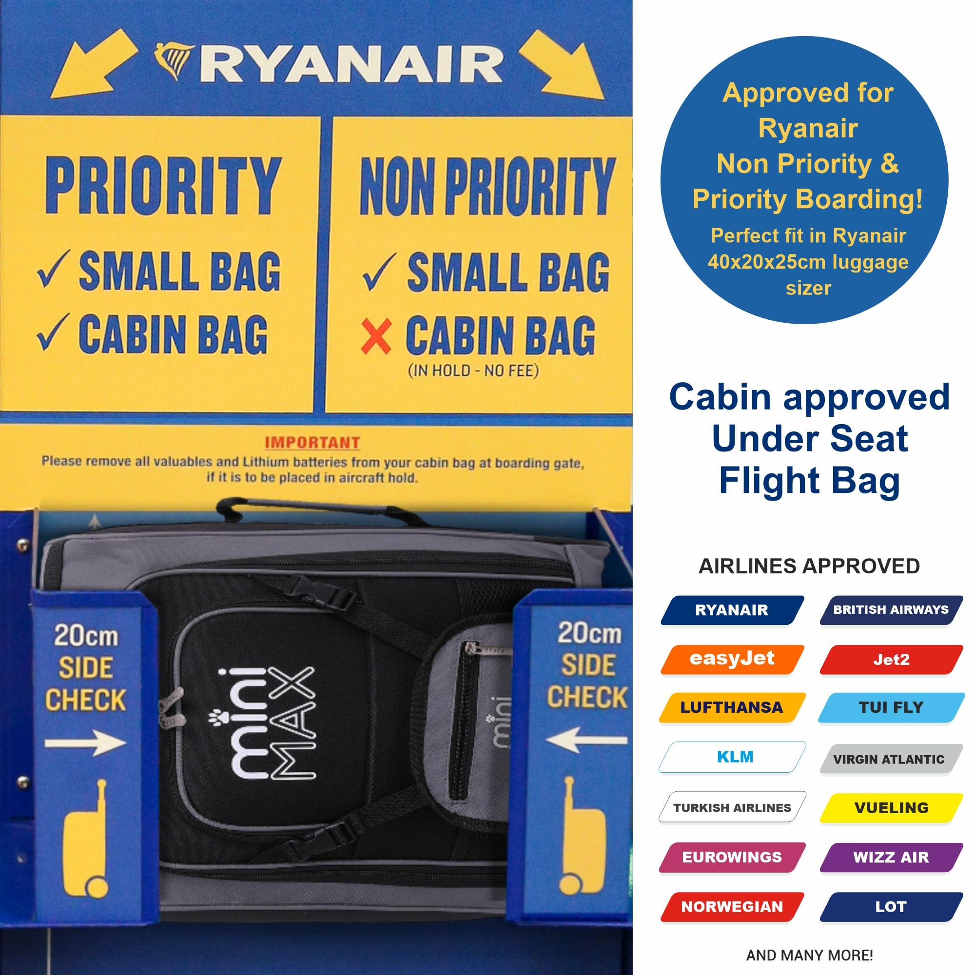 Aerolite MiniMAX Ryanair 20 l to torba podręczna o maksymalnym rozmiarze 40 x 20 x 25 cm, która jest idealna do podróży samolotem. Ta torba podręczna o pojemności 20 l została zaprojektowana z myślą o praktyczności i wygodzie użytkowania.