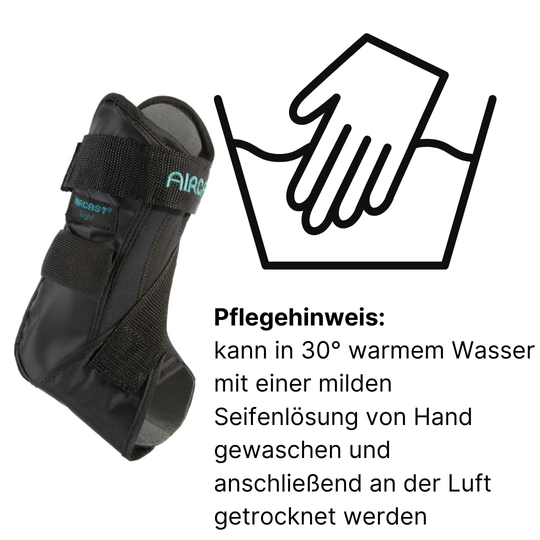 Oddychający i przyjazny: Oddychający i przyjazny dla skóry materiał: Orteza stawu skokowego AirGo wykonana jest z oddychających materiałów, które umożliwiają dobrą cyrkulację powietrza i odprowadzają wilgoć. Zapewnia to przyjemne uczucie podczas noszenia i minimalizuje ryzyko podrażnienia skóry.