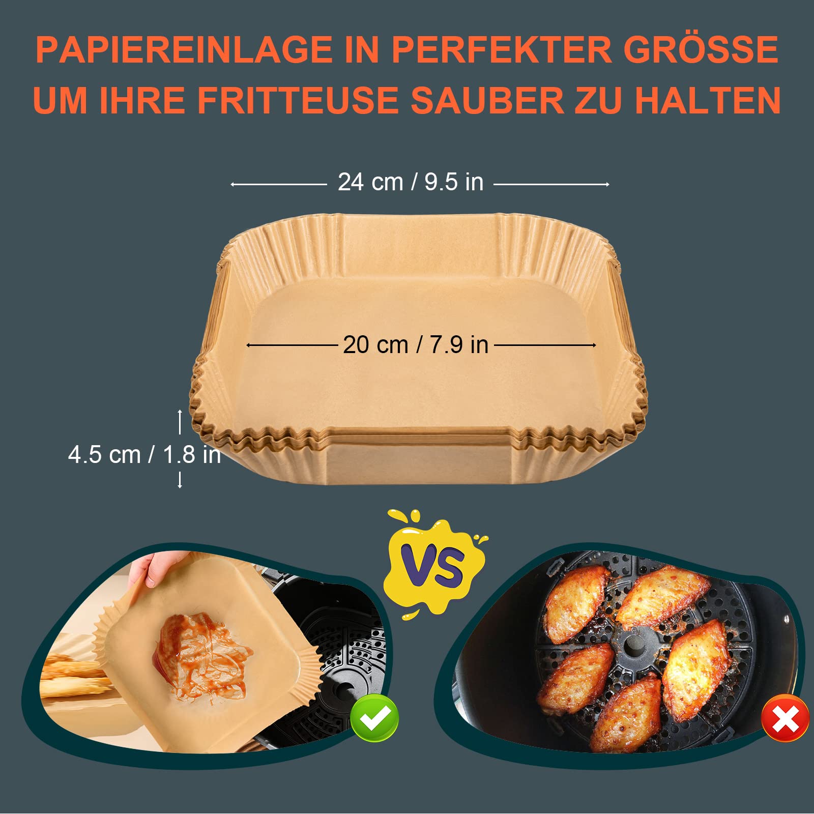 Airfryer XXL/XL to doskonałe rozwiązanie dla wszystkich miłośników zdrowego gotowania. Dzięki akcesoriom do frytkownicy na gorące powietrze kwadratowe z papierem do pieczenia, możesz cieszyć się ulubionymi potrawami bez zbędnego tłuszczu i kalorii.