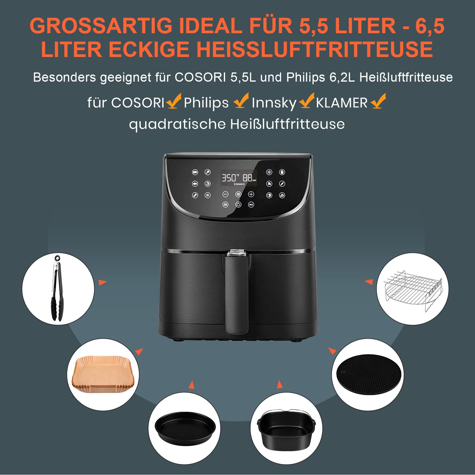 Te akcesoria pasują do wielu popularnych modeli frytkownic, takich jak COSORI, Philips, Innsky, KLAMER o pojemności 55 l/62 l. Dzięki nim możesz przygotować smaczne i chrupiące frytki, kurczaka czy warzywa, zachowując ich naturalny smak i wartości odżywcze.