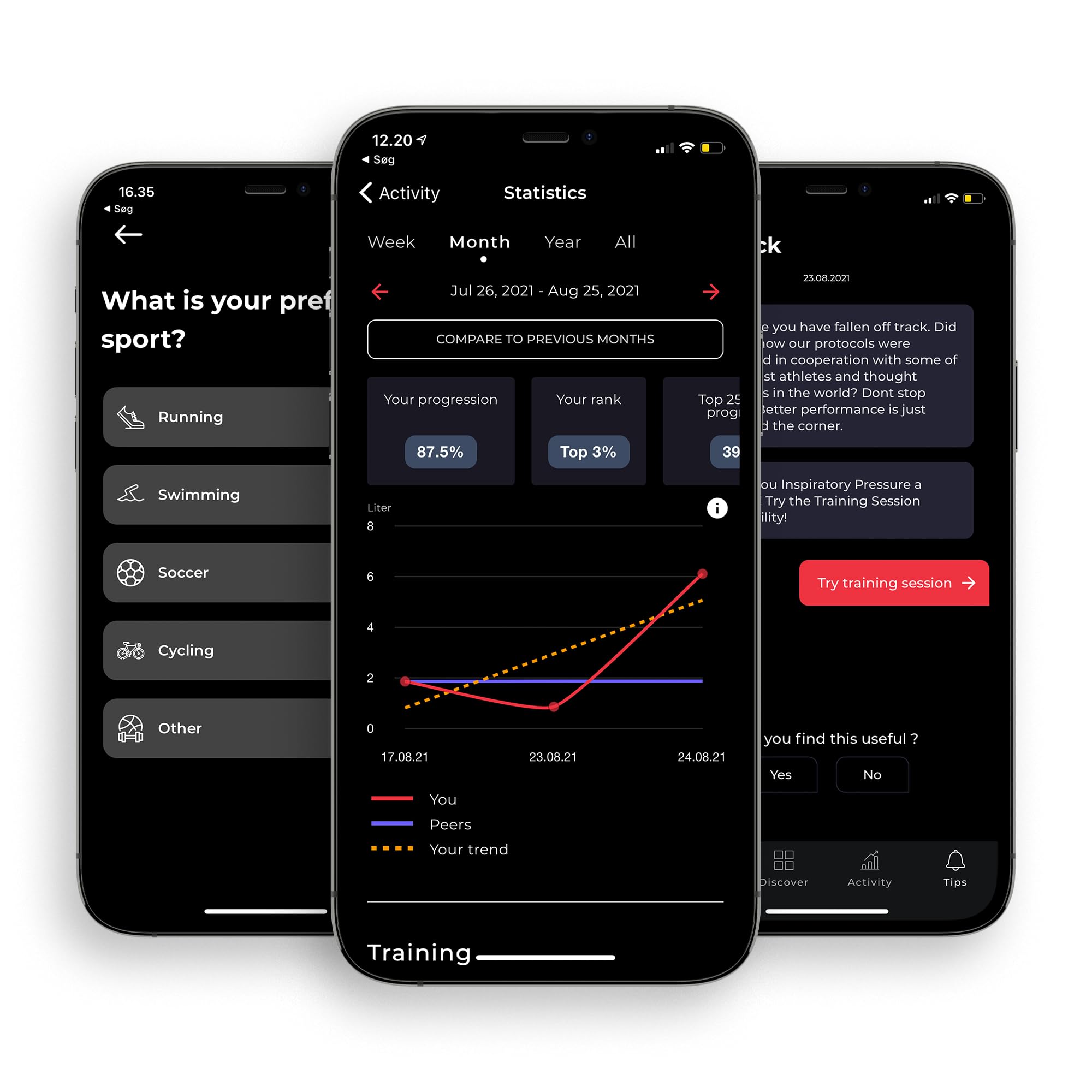 Ist Ihnen schon einmal die Puste ausgegangen? Dann ist Airofit genau das Richtige für Sie! SO FUNKTIONIERT ES: Airofit erzeugt einen Widerstand an Ihren Atemmuskeln. Ihre Atemmuskulatur reagiert auf das Training wie jede andere Muskelgruppe – sie wird schneller, stärker und effizienter. Dadurch erhalten Sie mehr Energie und Ausdauer bei körperlichen Aktivitäten und ein besseres Wohlbefinden im Alltag. Airofit besteht aus einem Atemtrainer und einer Handy-App. Dank der Kombination aus beidem erhalten Sie Echtzeit-Feedback und Anleitungen, um sicherzustellen, dass alle Übungen korrekt ausgeführt werden. Außerdem ermöglicht es Ihnen, Ihre Lungenfunktion zu messen und den Fortschritt über die Zeit zu verfolgen. AUF SIE ZUGESCHNITTEN: Das gesamte Airofit-Training ist speziell auf Sie zugeschnitten – es basiert auf Ihrem Alter, Ihrem Geschlecht, Ihrer Größe, Ihren körperlichen Fähigkeiten und Vorlieben, um sicherzustellen, dass Sie sich auf die Bereiche konzentrieren können, die für Sie wichtig sind. Die Vorteile von Airofit kommen jedem zugute – vom Spitzensportler über den Normalbürger bis hin zur älteren Generation, die an Atemwegserkrankungen leidet. Airofit passt selbst in den vollsten Terminkalender. Es ist so konzipiert, dass es unabhängig von anderen körperlichen Aktivitäten verwendet werden kann, so dass Sie jederzeit und überall trainieren können – zum Beispiel vom Sofa aus vor dem Fernseher. TRAINIEREN SIE NUR 5-10 MINUTEN AM TAG Airofit wird separat von anderen körperlichen Aktivitäten genutzt, nicht während des Trainings. Kurze Trainingseinheiten am Morgen und am Abend führen nachweislich zu deutlichen Verbesserungen. BESSERE LEISTUNG BEIM SPORT Durch gezieltes Training der Kraft, Geschwindigkeit und Effizienz Ihrer Atemmuskulatur verbessern Sie Ihre Vitalkapazität, anaerobe Schwellen und aerobe Leistung. VERBESSERTES ALLGEMEINES WOHLBEFINDEN Lassen Sie sich beim Treppensteigen oder beim Tragen von Einkäufen nicht aus der Puste bringen. Die Stärkung der Atemm