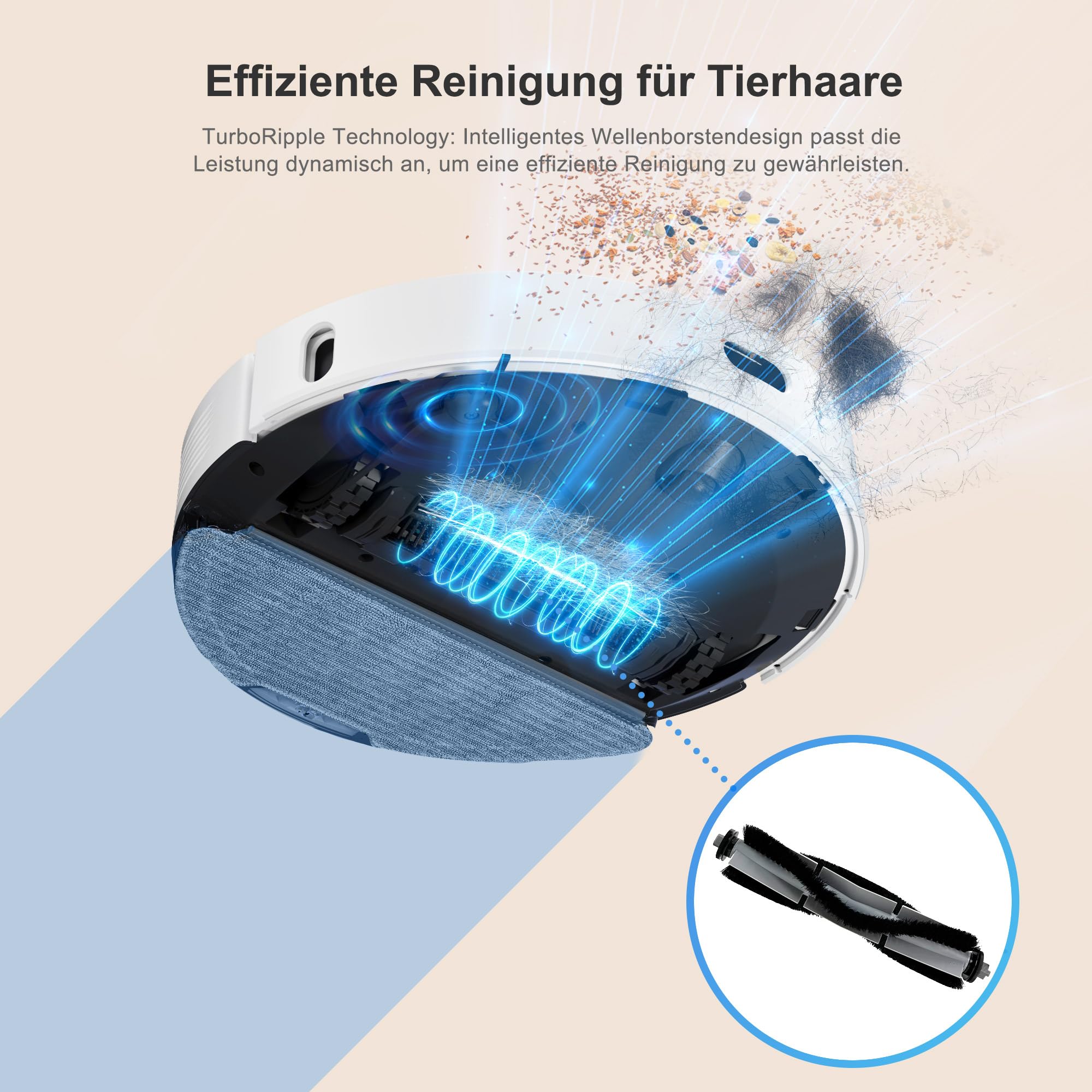 ✅ Ulepszona gumowana, pływająca: Ulepszona gumowana, pływająca szczotka główna do sierści zwierząt: Gumowana, pływająca szczotka główna skutecznie zbiera sierść zwierząt, brud i zanieczyszczenia i dostosowuje się do różnych rodzajów podłóg, zapewniając głębokie i spójne czyszczenie – odkurzacz robotyczny jest idealny dla gospodarst