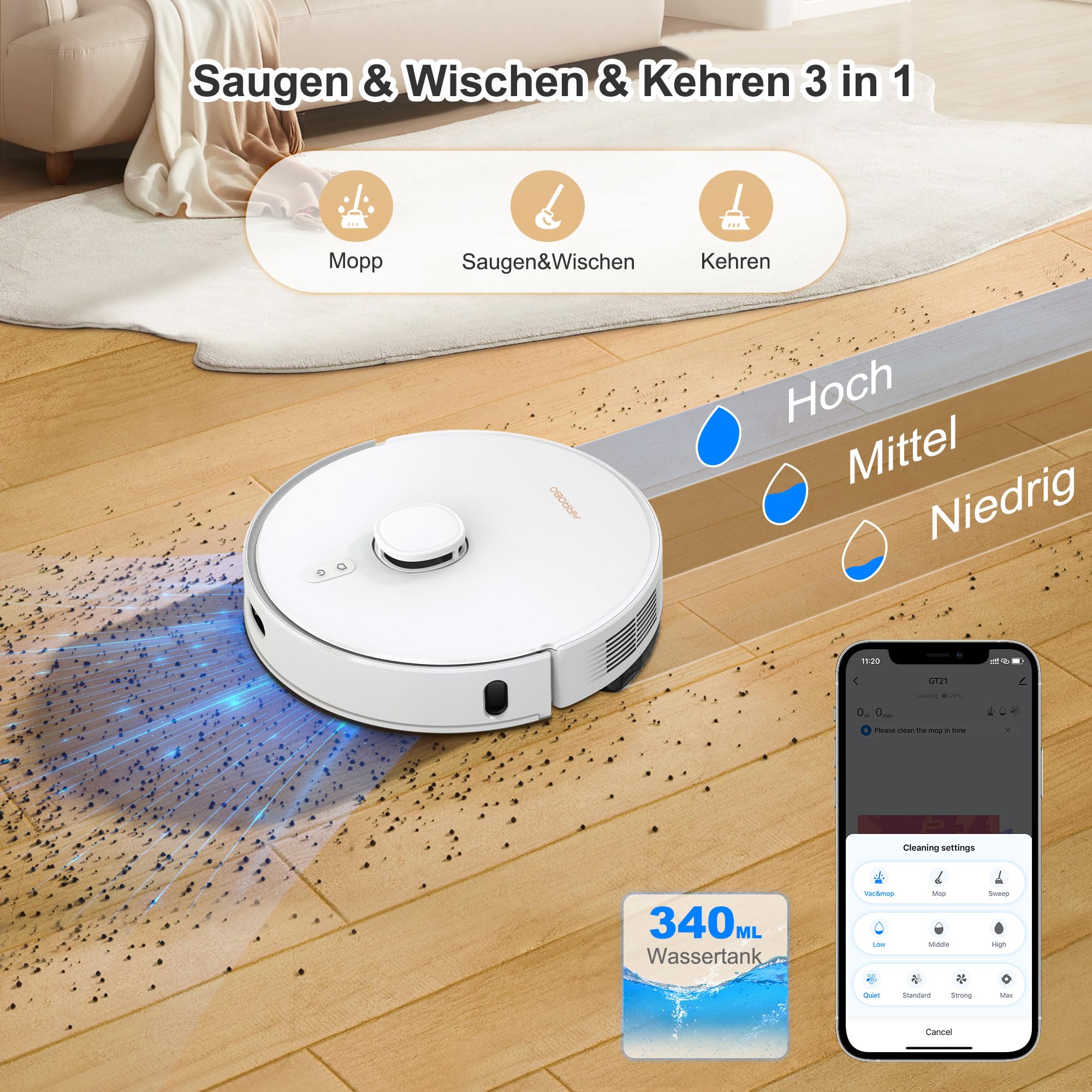 ✅ Zamiatanie, odkurzanie i: Zamiatanie, odkurzanie i mycie 3 w 1: Uzyskaj nieskazitelne podłogi w jednej operacji; Robot sprzątający GT21 z funkcją mopowania łączy w sobie dużą moc ssania, wydajne zamiatanie i 3,4-litrowy zbiornik na wodę do mopowania, dzięki czemu idealnie nadaje się do usuwania kurzu, plam i sierści zwierząt