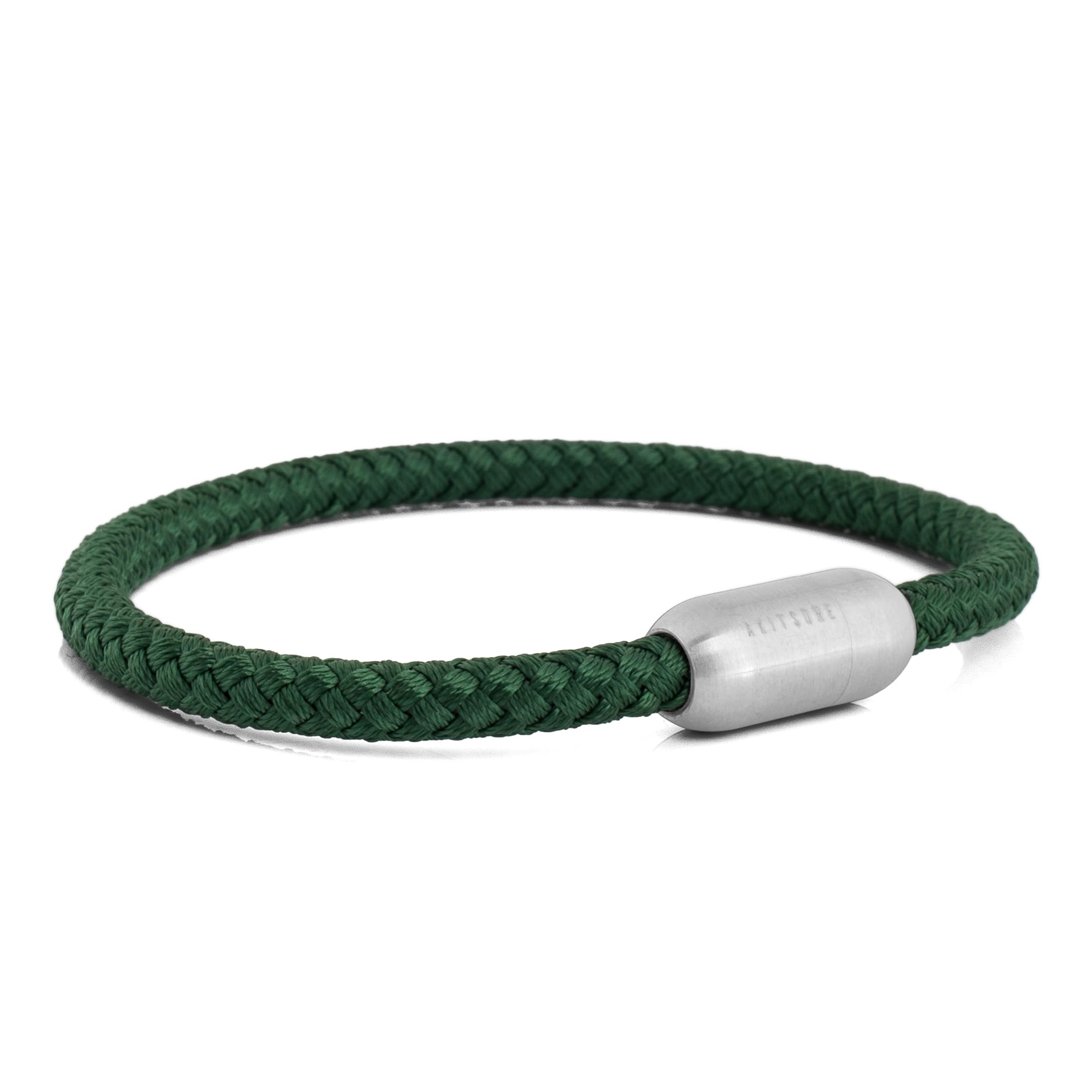 Akitsune Silva bransoletka nylonowa, biżuteria na rękę dla kobiet i mężczyzn, stal szlachetna, bransoletka z zapięciem magnetycznym, matowe srebro, grubość 5 mm, 17.5 centimeters, Stal nierdzewna
