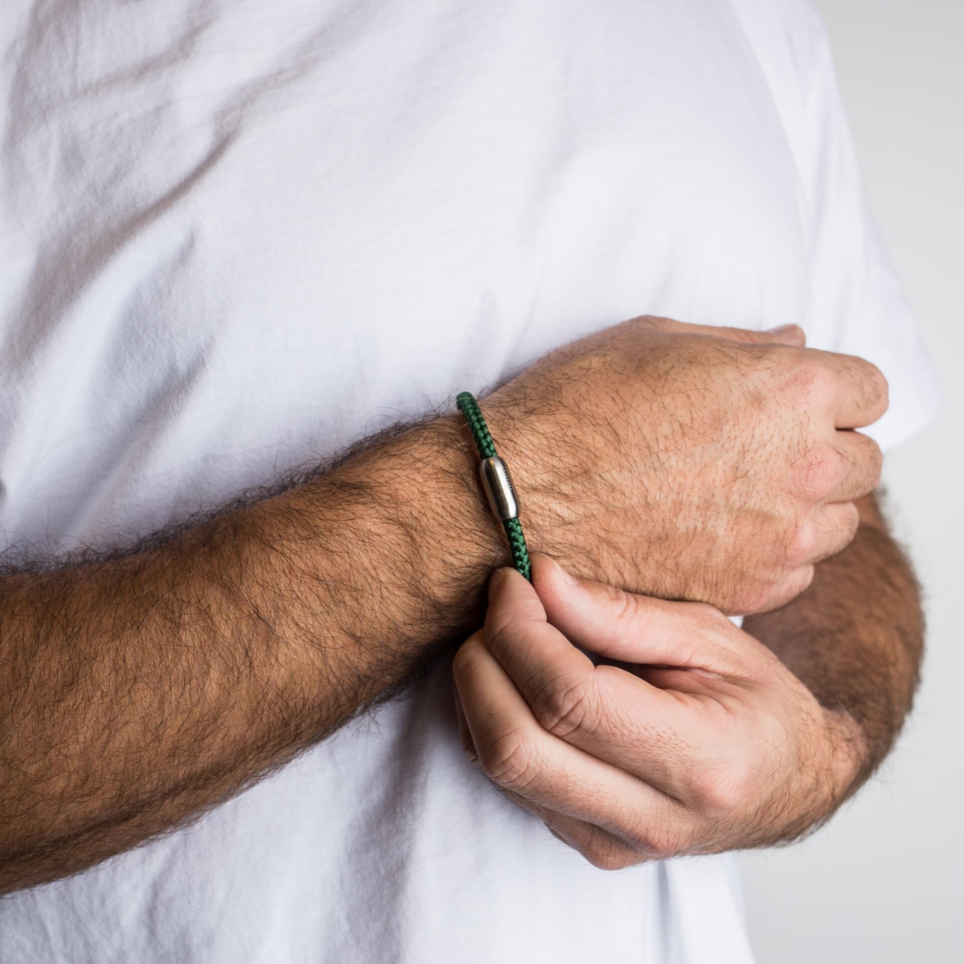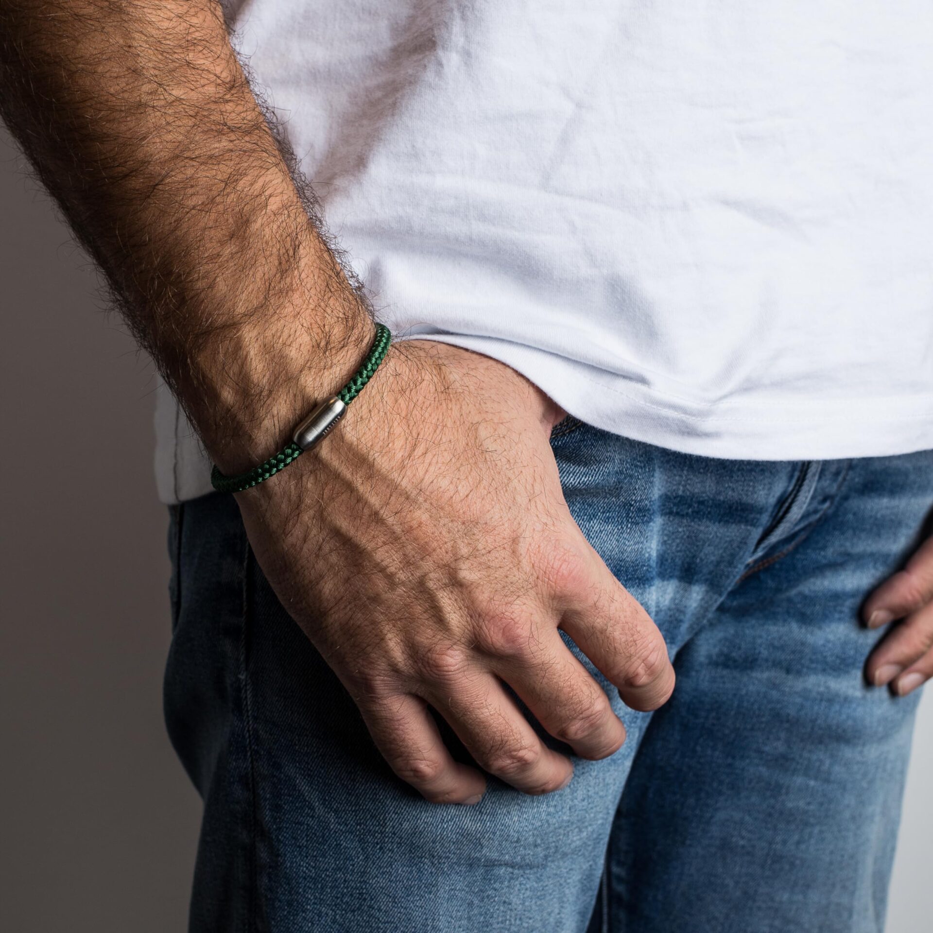 Akitsune Silva bransoletka nylonowa, biżuteria na rękę dla kobiet i mężczyzn, stal szlachetna, bransoletka z zapięciem magnetycznym, matowe srebro, gr
