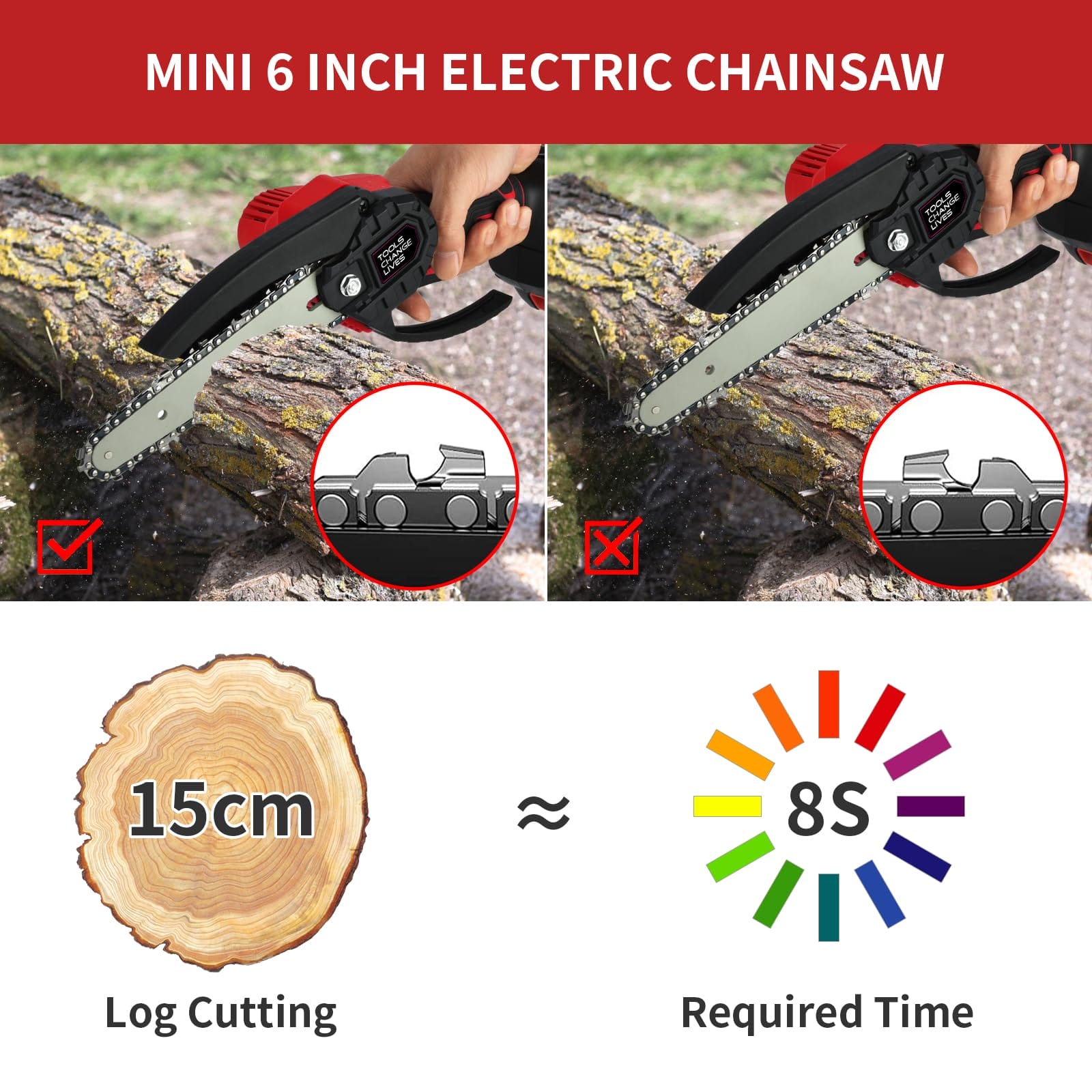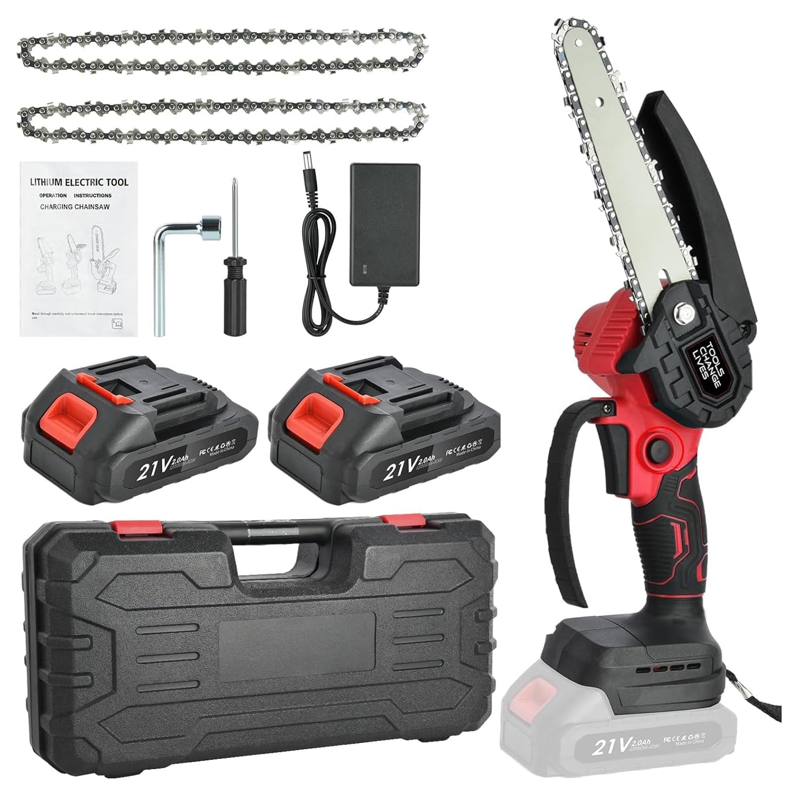 Mini pilarka łańcuchowa akumulatorowa 15 cm: ręczna elektryczna piła łańcuchowa z 2 bateriami 2 x 20 AH – przenośna piła łańcuchowa do cięcia na podwórku w ogrodzie mini piły łańcuchowe z blokadą.