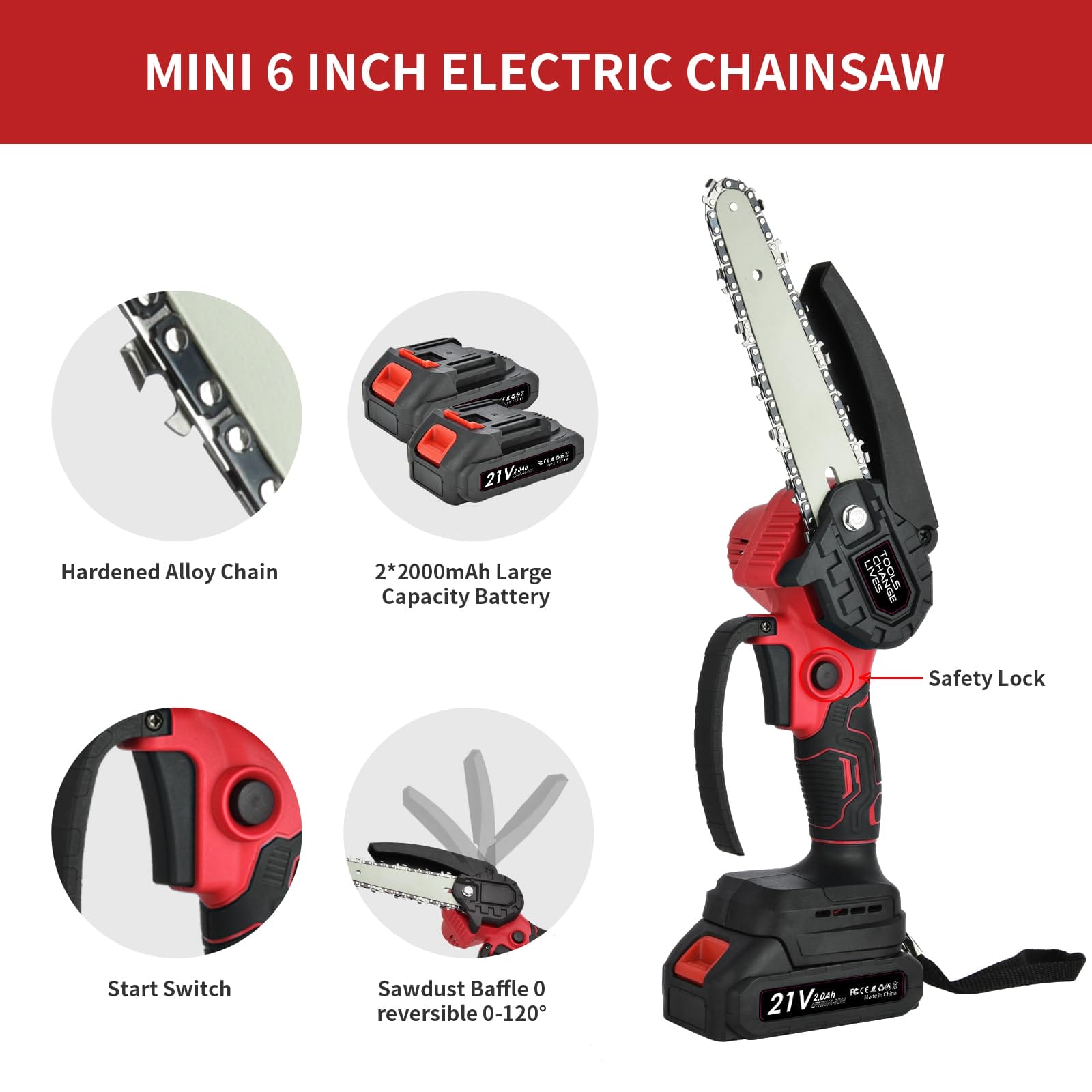 Nasza mini pilarka łańcuchowa jest wyposażona w blokadę, która zapewnia bezpieczeństwo podczas użytkowania. Możesz być pewien, że narzędzie nie uruchomi się przypadkowo, co daje Ci większą pewność siebie podczas pracy.