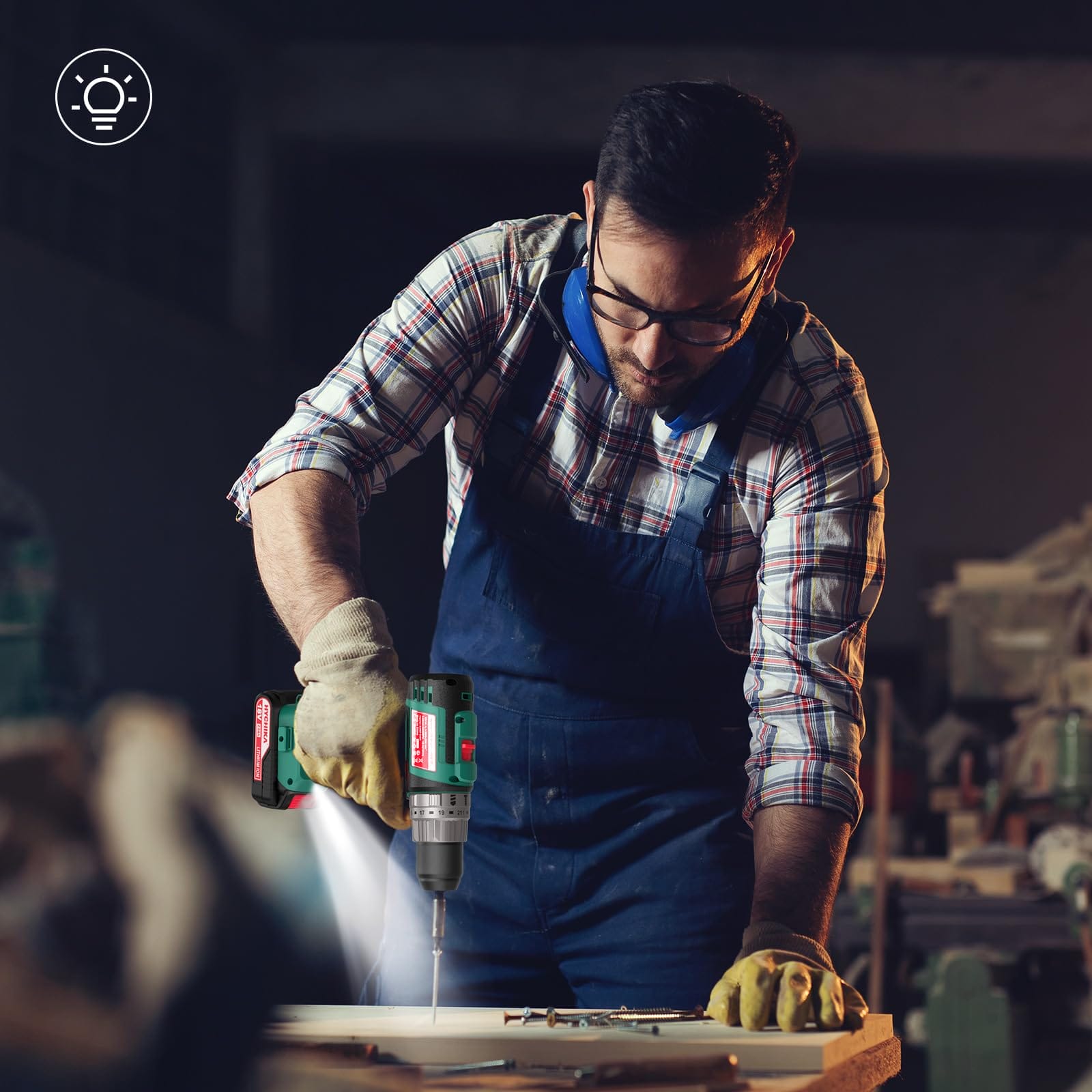 Maks. 60 Nm: Maks. 60 Nm i 21 poziomów momentu obrotowego: 21 poziomów momentu obrotowego i maksymalny moment obrotowy wynosi 60 Nm, dzięki czemu wkrętarka akumulatorowa HYCHIKA zapewnia odpowiednią siłę i prędkość do wkręcania i wiercenia w różnych pracach w drewnie, metalu i tworzywie sztucznym.