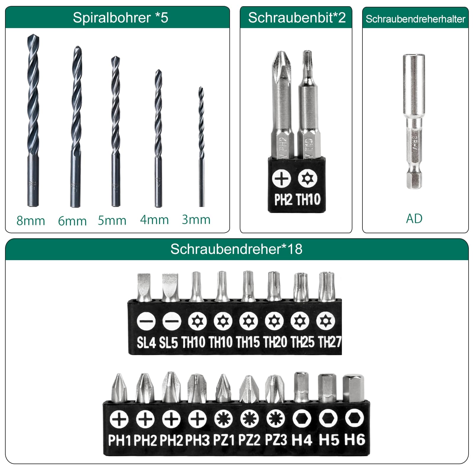 Z 27 AKCESORIAMI: Z 27 AKCESORIAMI : Z 22 akcesoriami zaspokoi potrzeby większości rodzajów prac. Nadaje się do wiercenia otworów w drewnie i plastiku, mocowania i odkręcania śrub. W zestawie 5 wierteł krętych, 20 końcówek wkrętakowych, adapter i Bateria 1500 mAh