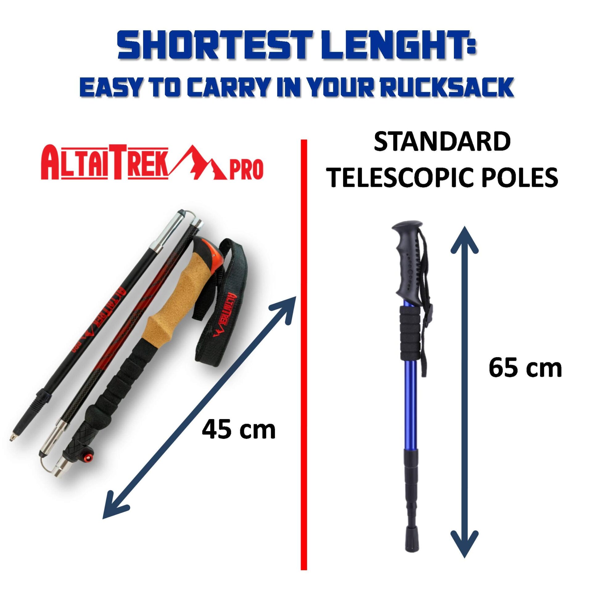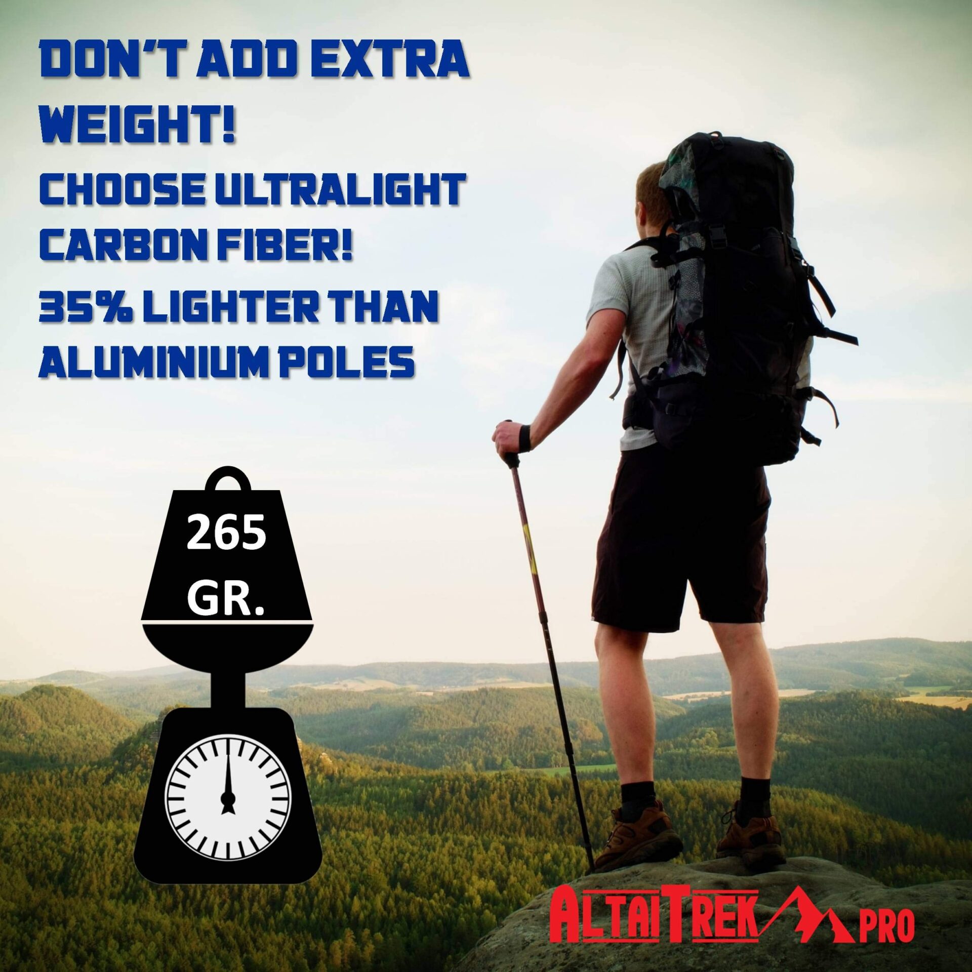 Składane kijki trekkingowe ALTAITREK PRO to doskonały wybór dla miłośników turystyki pieszej i górskiej, którzy cenią sobie lekkość, wytrzymałość i funkcjonalność sprzętu. Wykonane z wysokiej jakości włókna węglowego, kijki są niezwykle lekkie, co sprawia, że są idealne do długich wędrówek i trudnych tras.