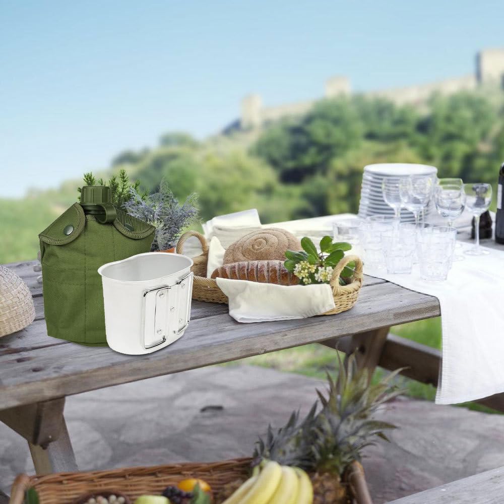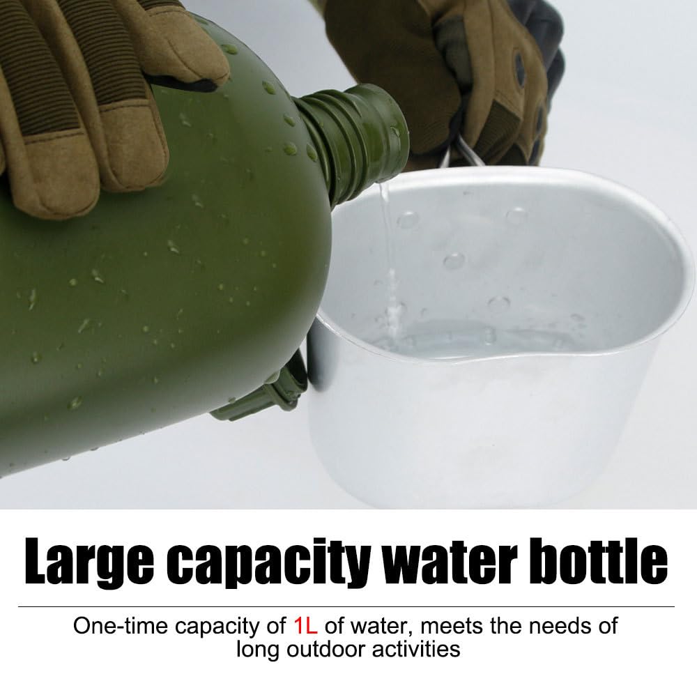 Aluminiowy zestaw butelek na wodę, przenośny 1 l, wojskowy czajnik na wodę, wojskowy zestaw stołówek do survivalu na świeżym powietrzu, wędrówek, biwakowania, wędrówek z plecakiem