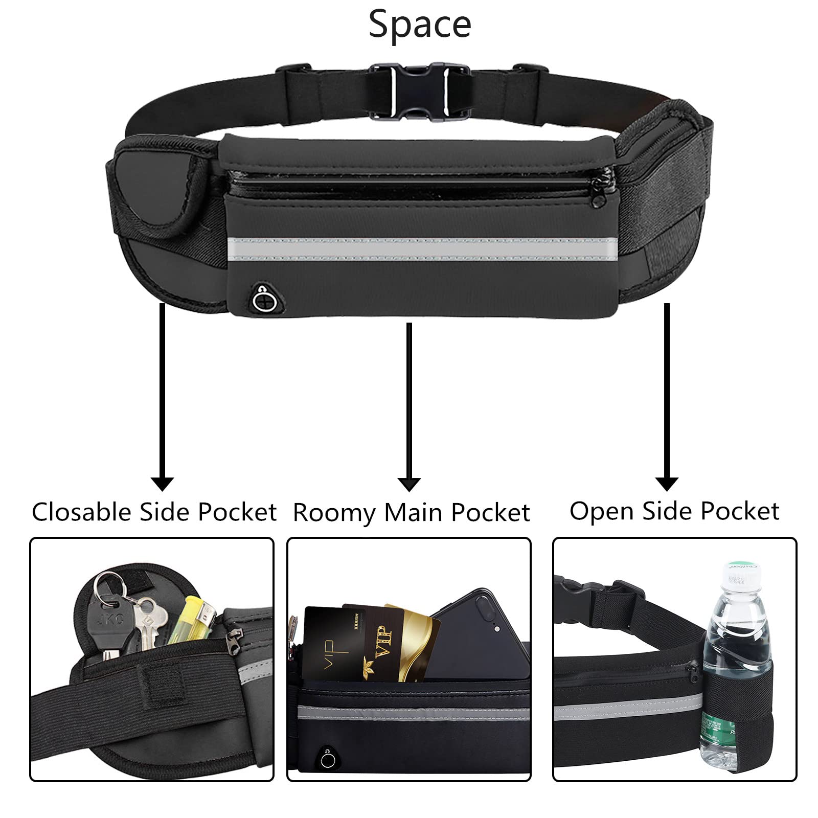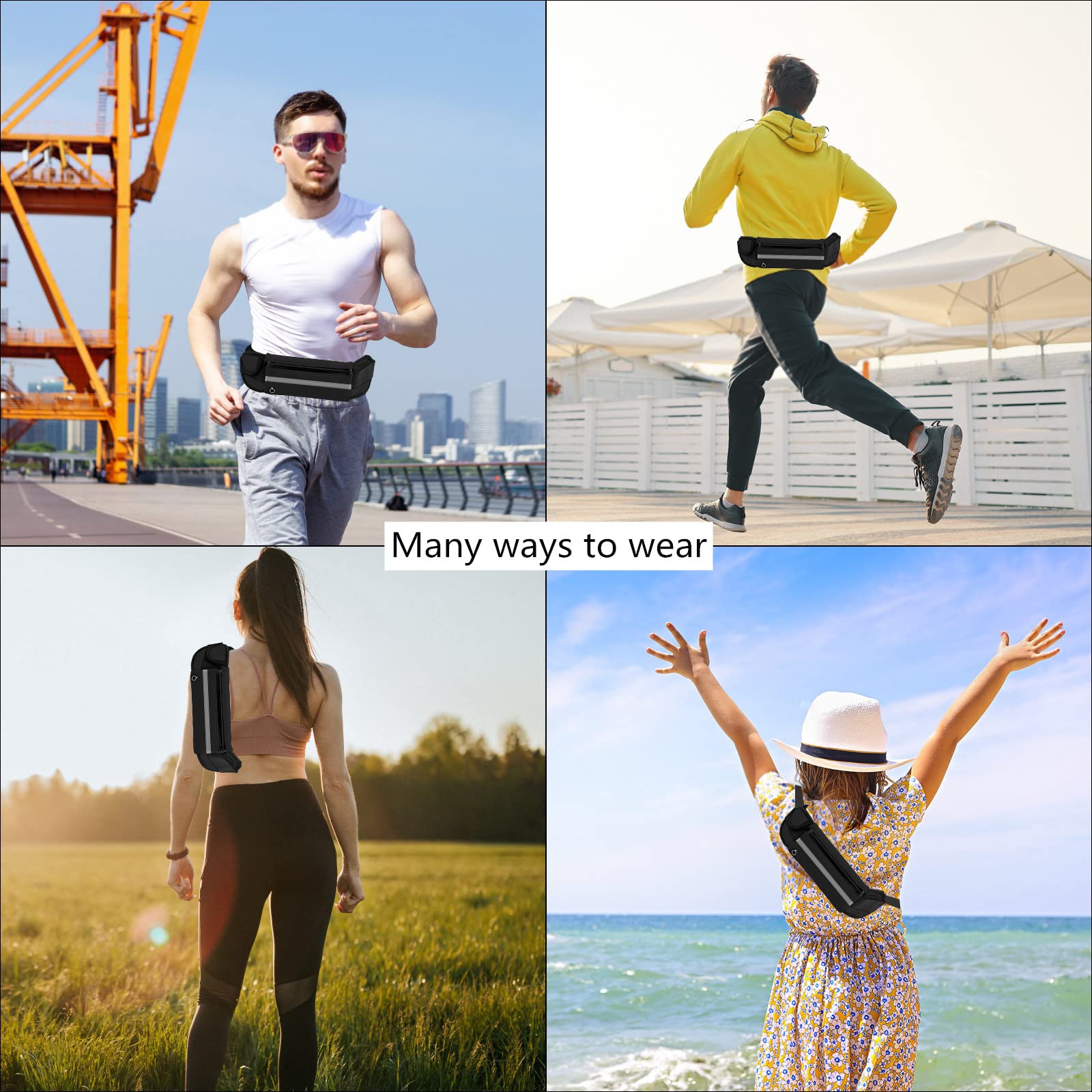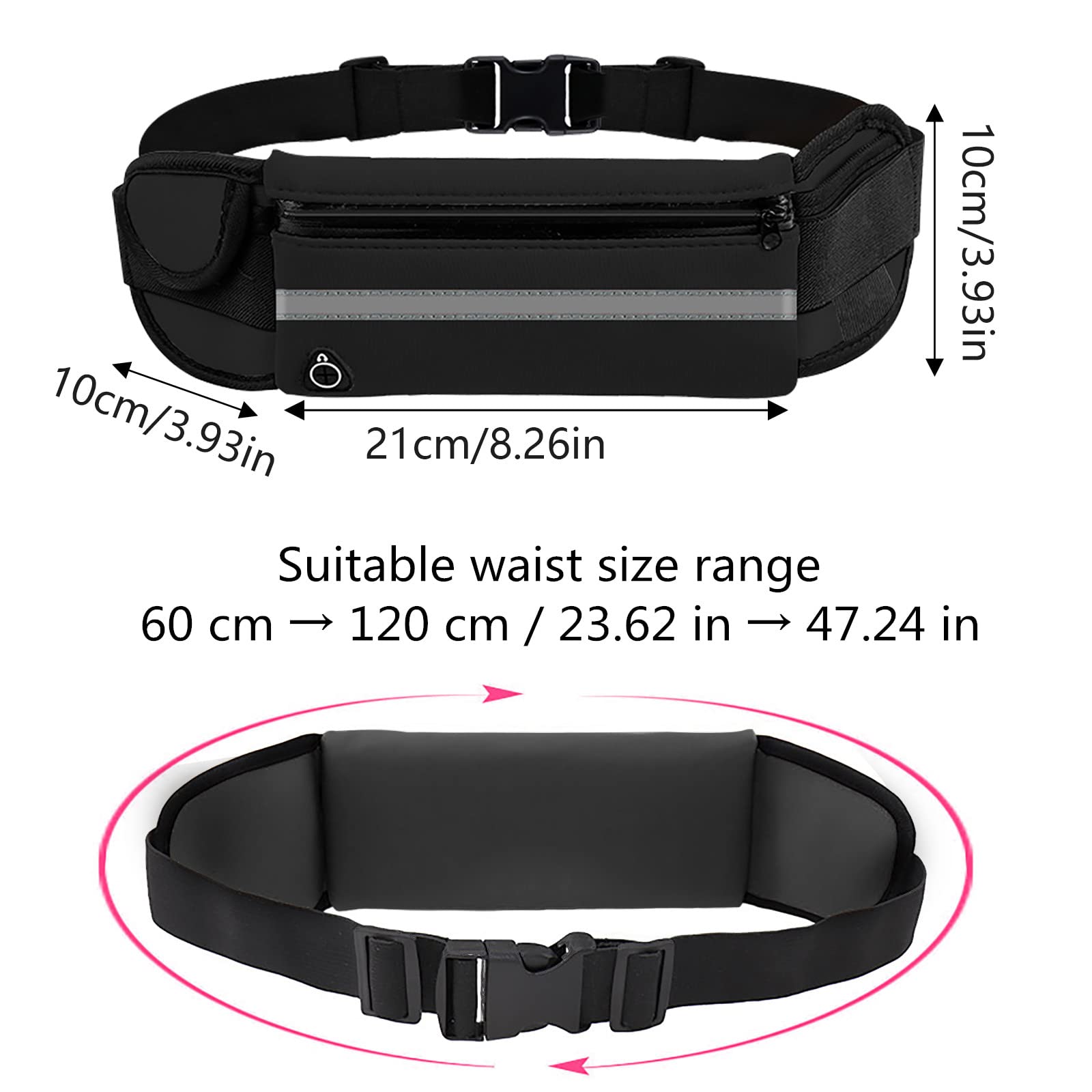 • ★ 【Regulowany pasek i solidna klamra】Dzięki mocnej elastyczności, regulowanemu pasowi i otwartej klamrze można łatwiej regulować szerokość. Ten pasek do biegania pasuje do większości kształtów ciała i talii i pasuje do rozmiaru 60-120 cm i może być mocno przymocowany do bioder lub ramienia, uwolnij ręce.