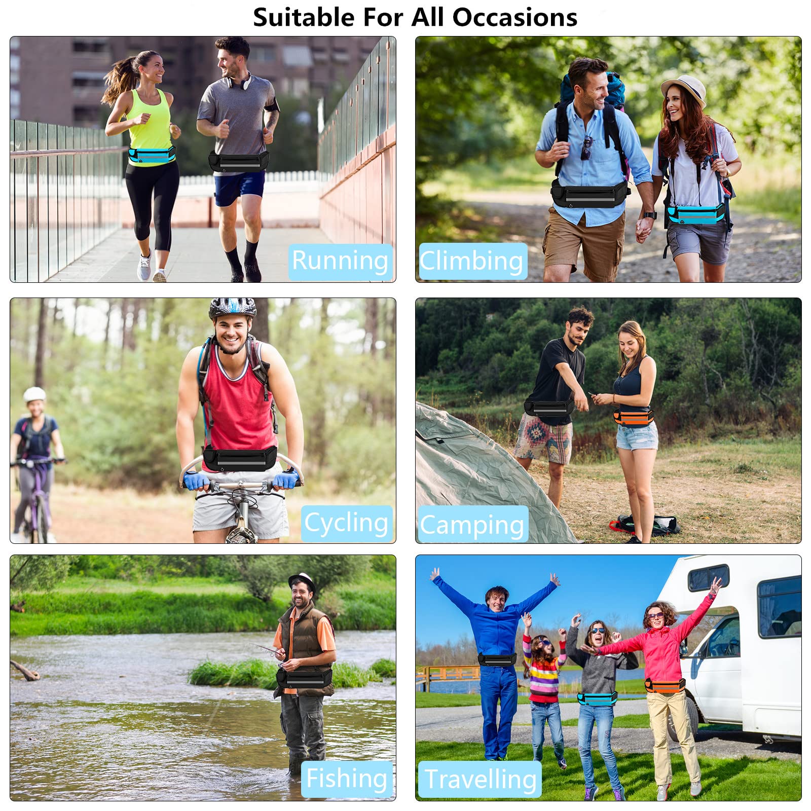 • ★ 【Wysokiej jakości materiał】Nasze opakowania typu Fanny Pack są wykonane z miękkiej i przyjaznej dla skóry tkaniny Oxford, która jest odporna na działanie wody, trwała, oddychająca i odporna na pot. Wodoodporna tkanina może wytrzymać małe krople deszczu i krople potu, chroniąc twoje przedmioty i telefon przed wilgocią.