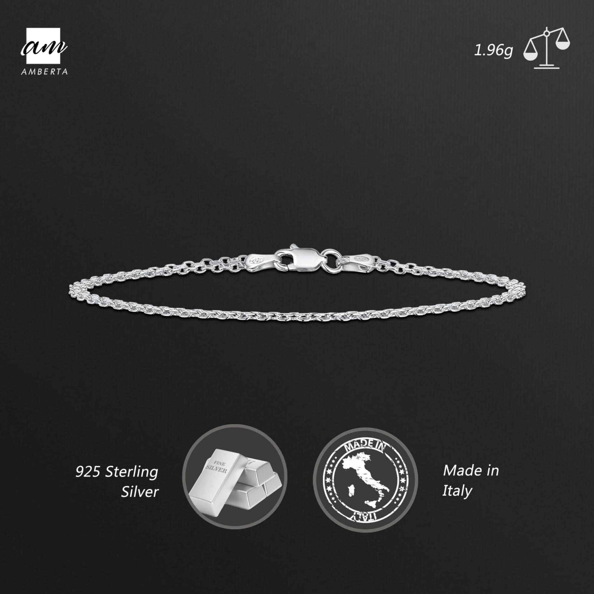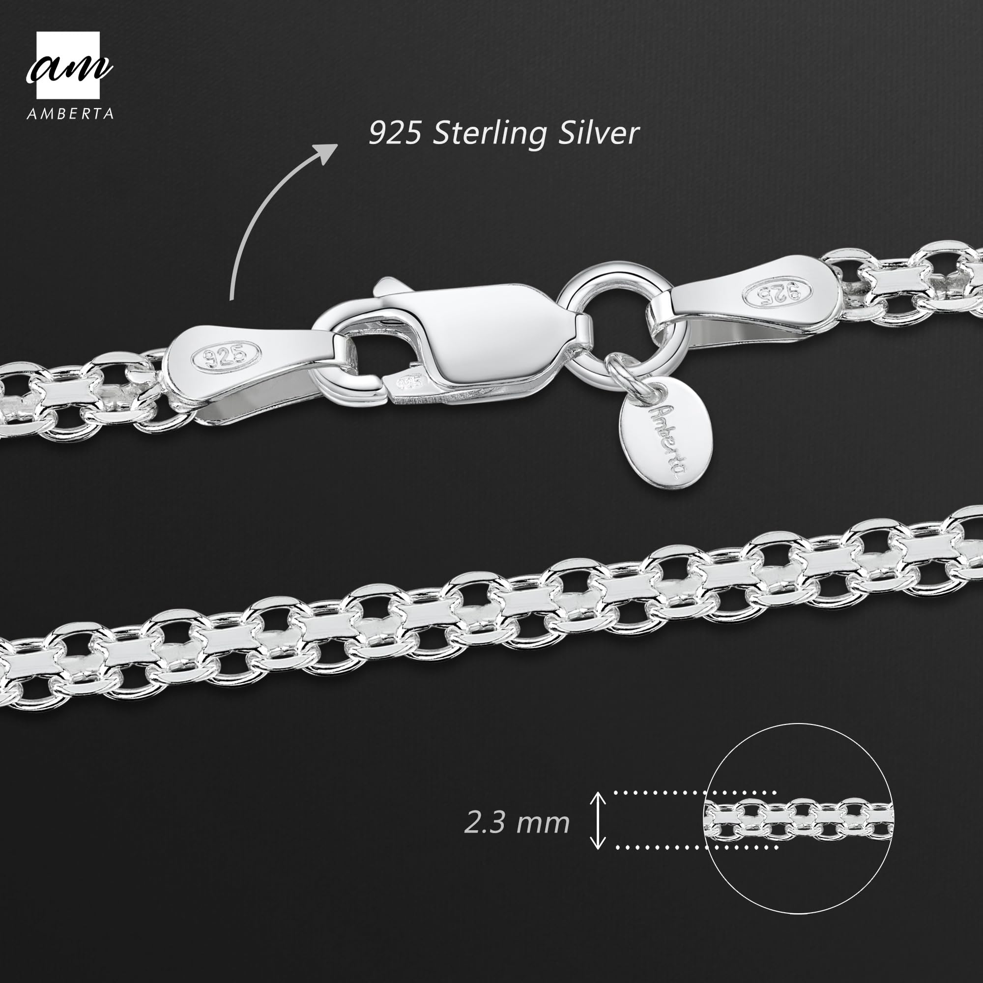 Amberta Srebro wysokiej próby 925 22 mm Bismark łańcuszek bransoletka to elegancki i stylowy dodatek, który doskonale uzupełni każdą stylizację. Wykonany z najwyższej jakości srebra próby 925, ten piękny łańcuszek bransoletka jest nie tylko trwały, ale także pięknie się prezentuje na nadgarstku.