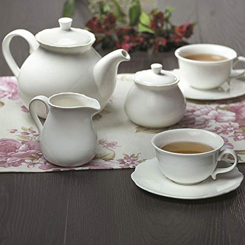 Zestaw zawiera 6 filiżanek o pojemności 220 ml, które mają elegancki, falisty kształt. Dodatkowo, zestaw zawiera 6 spodków o średnicy 15 cm, które idealnie pasują do filiżanek. W skład zestawu wchodzi również 1 cukiernica z pokrywką, 1 dzbanek na mleko o pojemności 250 ml oraz 1 dzbanek do herbaty z pokrywką. Dzięki temu zestawowi, będziesz mógł cieszyć się pełnym serwisem do kawy, który spełni wszystkie Twoje potrzeby.