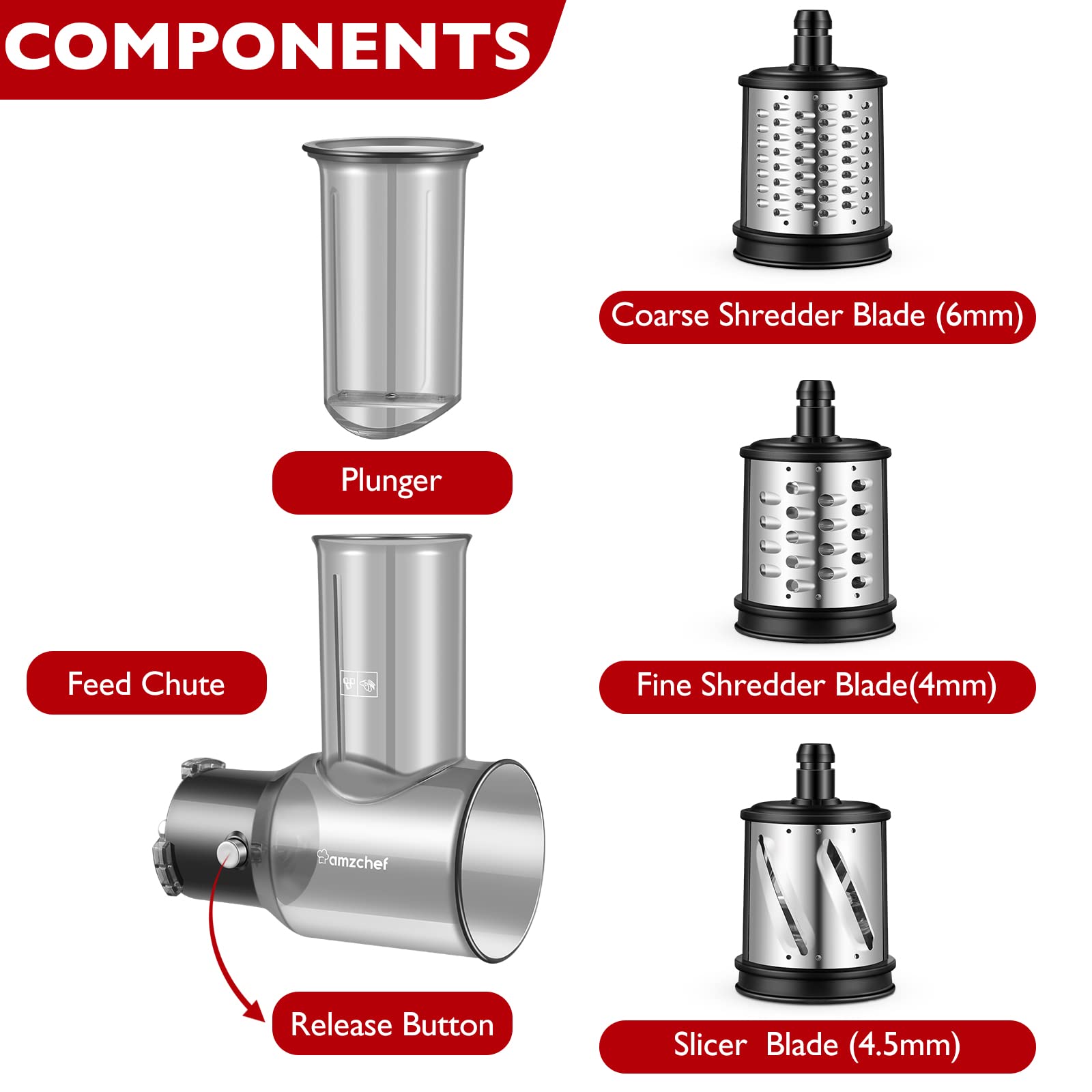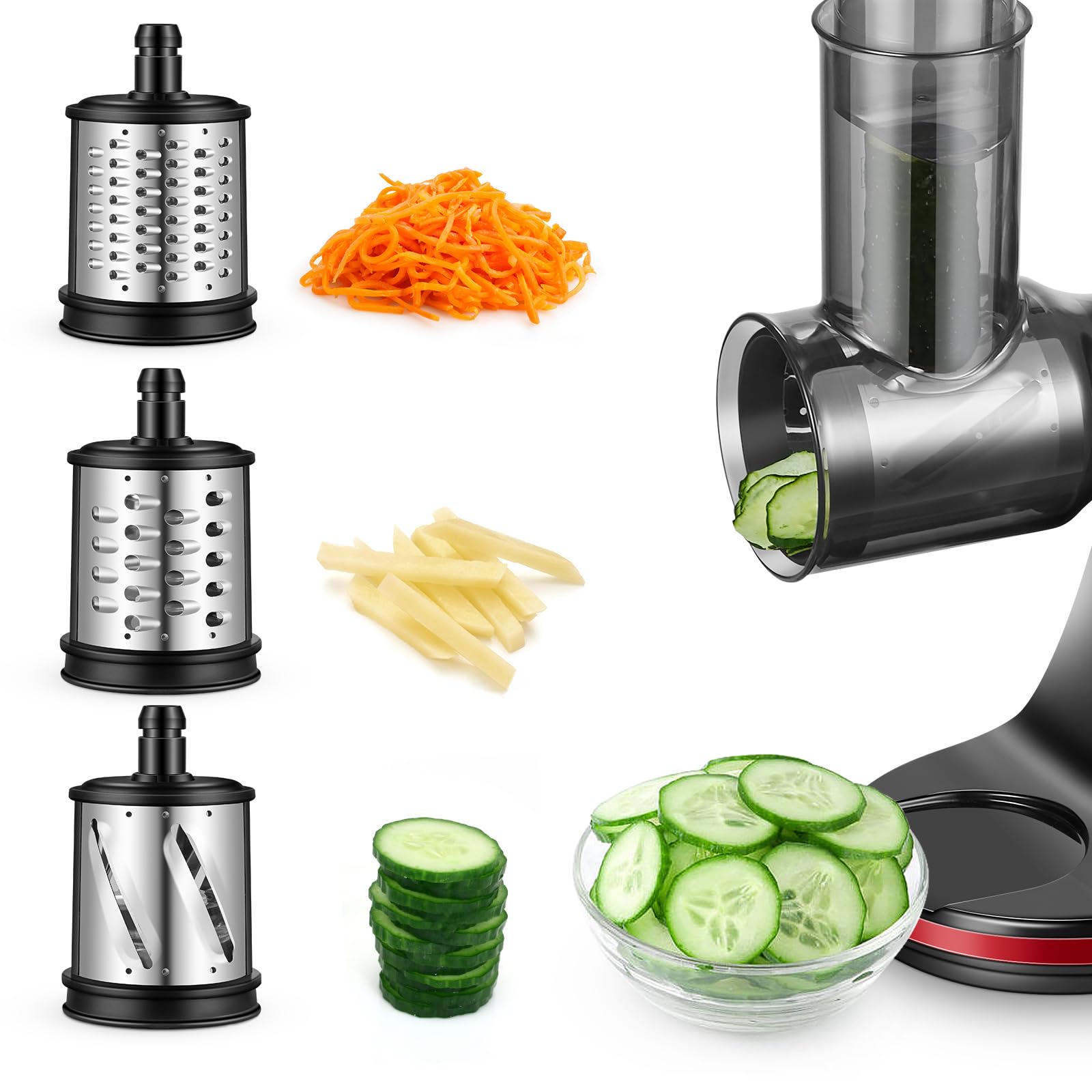 AMZCHEF Krajalnica do Warzyw do Akcesoriów do Sokowirówek 3 w 1 – ZM1501 Akcesoria & GM3001 Akcesoria – Obrotowa Tarka do Sera – Krajalnica Uniwersalna z 3 Wymiennymi Ostrzami