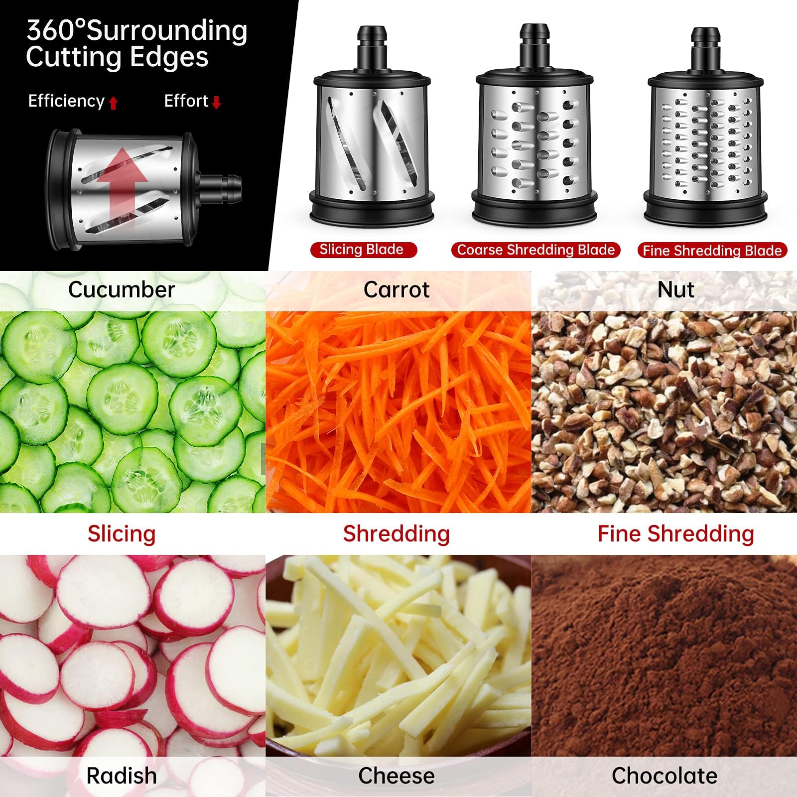 ✅ [Wielofunkcyjna Zestaw do: [Wielofunkcyjna Zestaw do Tarcia i Szatkowania]- Ostrze rolkowe 360° jest zaprojektowane tak, aby szybko i łatwo rozdrobnić każdy rodzaj sera, warzyw, orzechów, dodatków do pizzy itp. 3 rozmiary rozdrabniaczy, aby zaspokoić Twoje różne potrzeby: 4,5 mm ostrze tnące, 6 mm ostrze grubo siekające, 4 mm
