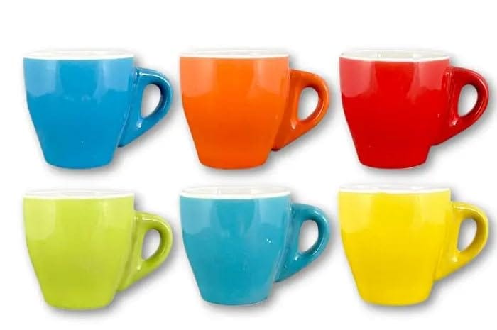 • Zestaw 6 sztuk stożkowe kubki zestaw 6 sztuk kolorowe i hartowane ceramiczne ceramiczne kolorowe stożkowe kubki do kawy • Kolorowe kubki do kawy • Materiał: ceramika • Średnica kubka górnego: 6 cm • Wysokość: 7 cm