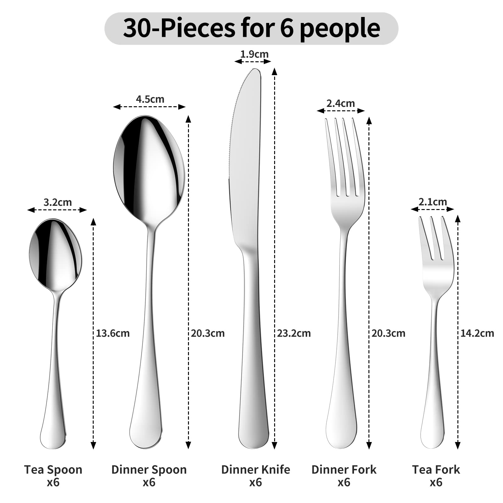 Zestaw sztućców Aoeeppa dla 6 osób, 30 części, stal nierdzewna, polerowane