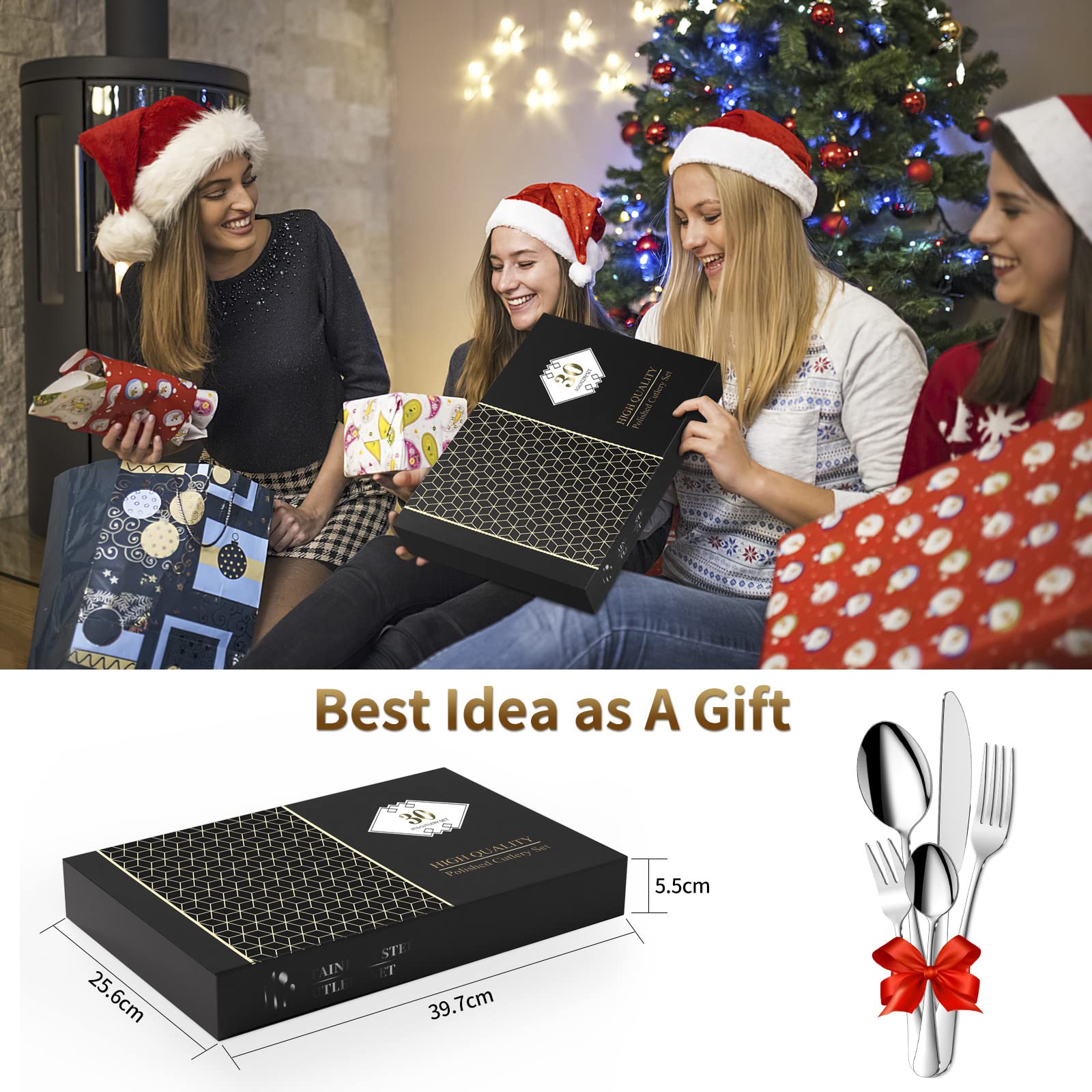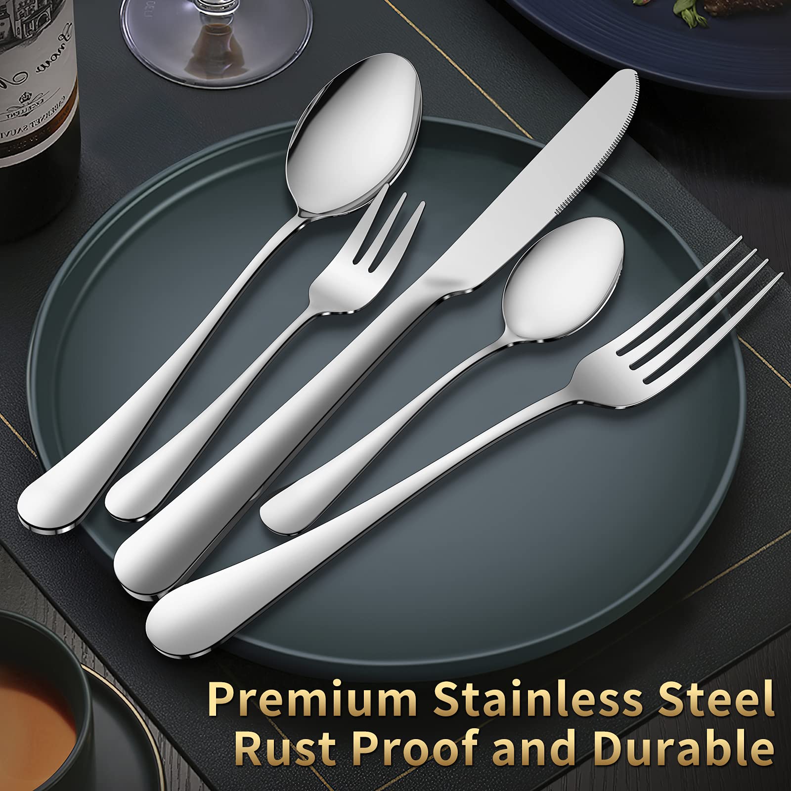 Zestaw sztućców Aoeeppa dla 6 osób to elegancki, 30-częściowy komplet, który łączy w sobie funkcjonalność i estetykę. Wykonany z wysokiej jakości stali nierdzewnej, sztućce są polerowane na lustro, co nadaje im wyjątkowy blask i sprawia, że doskonale prezentują się na każdym stole.