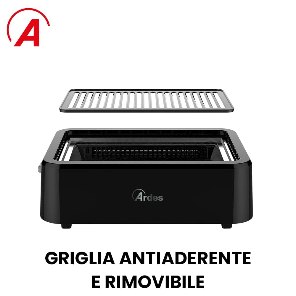 ARDES | ARGRILL01 to przenośny grill elektryczny bez dymu, który można używać zarówno wewnątrz, jak i na zewnątrz. Jest to idealne rozwiązanie dla osób, które chcą cieszyć się smakiem grillowanego mięsa, ryb czy warzyw, ale nie mają możliwości korzystania z tradycyjnego grilla na węgiel lub gaz.