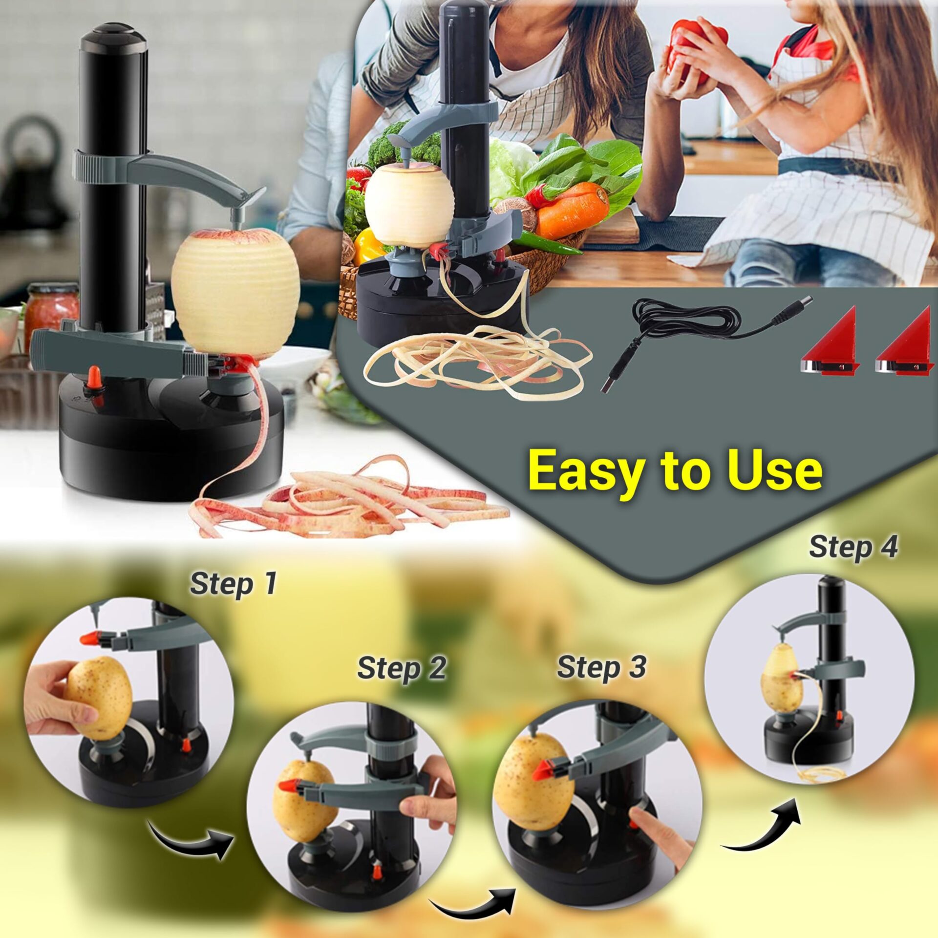 ✅ Elektryczna obieraczka do: Elektryczna obieraczka do ziemniaków – to niesamowita maszyna do obierania, która szybko i łatwo obiera ziemniaki, jabłka i owoce. Nadaje się do większości owoców i warzyw. Niezbędne narzędzie kuchenne