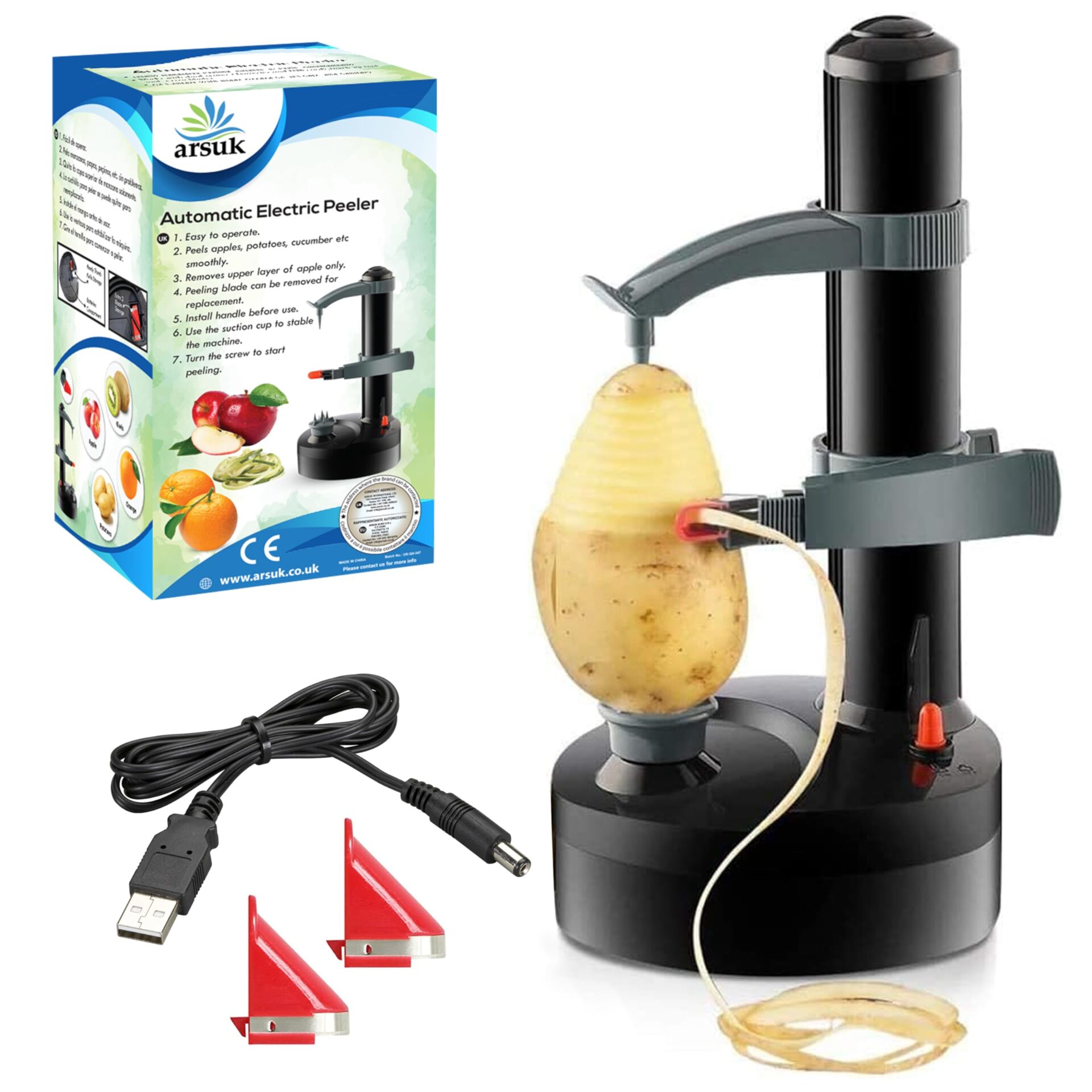 ✅ Elektryczna obieraczka do: Elektryczna obieraczka do ziemniaków – ramię zrobotyzowane dostosowuje się do każdej grubości, kształtu i tekstury. Od ziemniaków po rutabagę i awokado, również skórki owoców cytrusowych. Ziemniak można obrać w ciągu 10 sekund