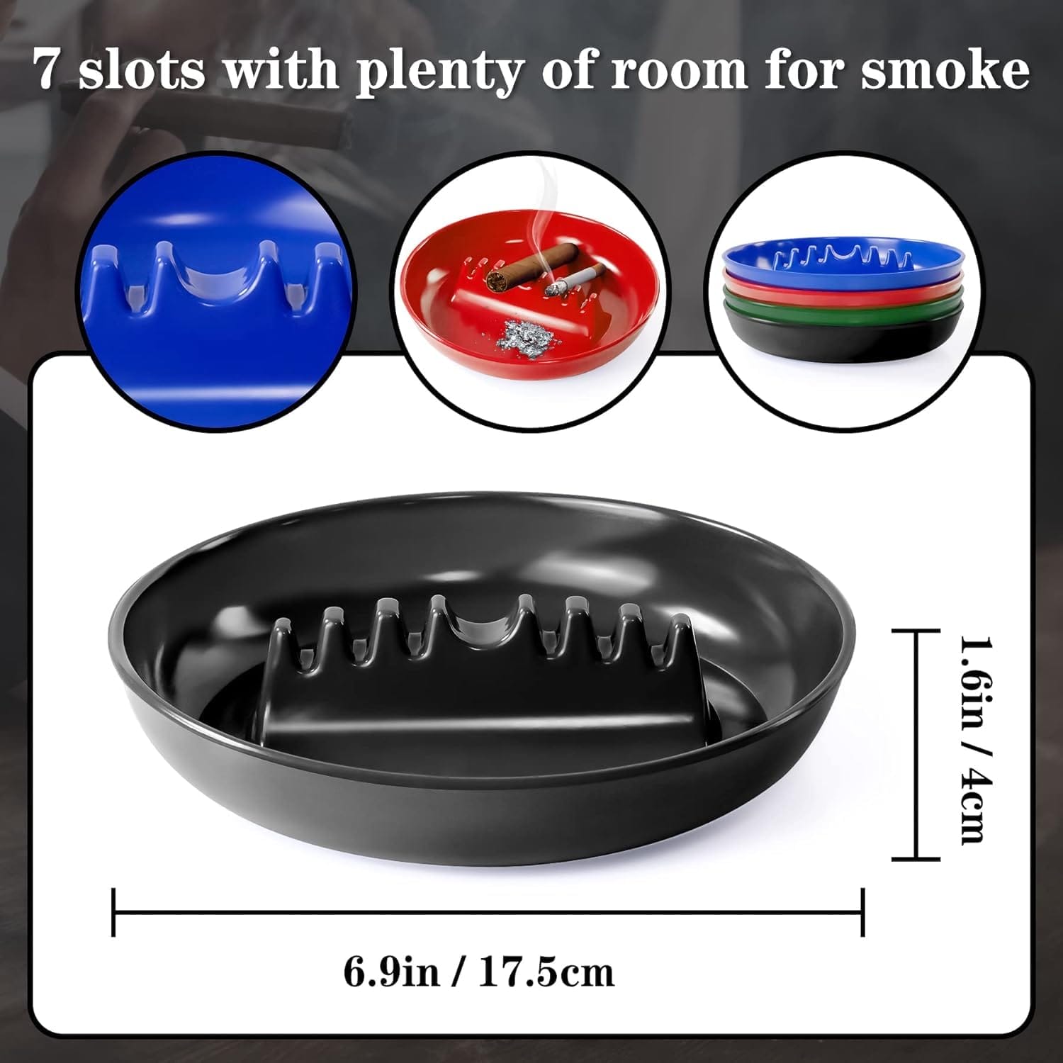Popielniczka ma siedem różnych rozmiarów otworów, które spełniają różne potrzeby palaczy. Bez względu na to, czy palisz papierosy czy cygara, ta popielniczka zapewnia odpowiednią przestrzeń na popiół. Jej pojemność jest wystarczająca, aby zaspokoić różnorodne preferencje palaczy.