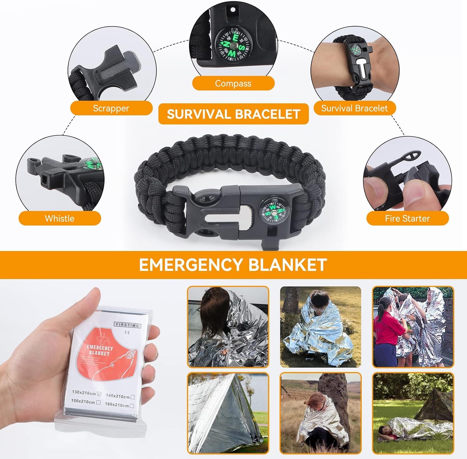 ✅ Szerokie zastosowanie –: Szerokie zastosowanie – awaryjne wyposażenie ratunkowe jest praktyczne i wszechstronne, cenne narzędzie do użytku na zewnątrz i w domu. Szeroko stosowany do polowań, wędrówek, wędkowania, jazdy na rowerze, eksploracji, wspinaczki lub innych przygód na świeżym powietrzu. Jest to również niezbędne nar