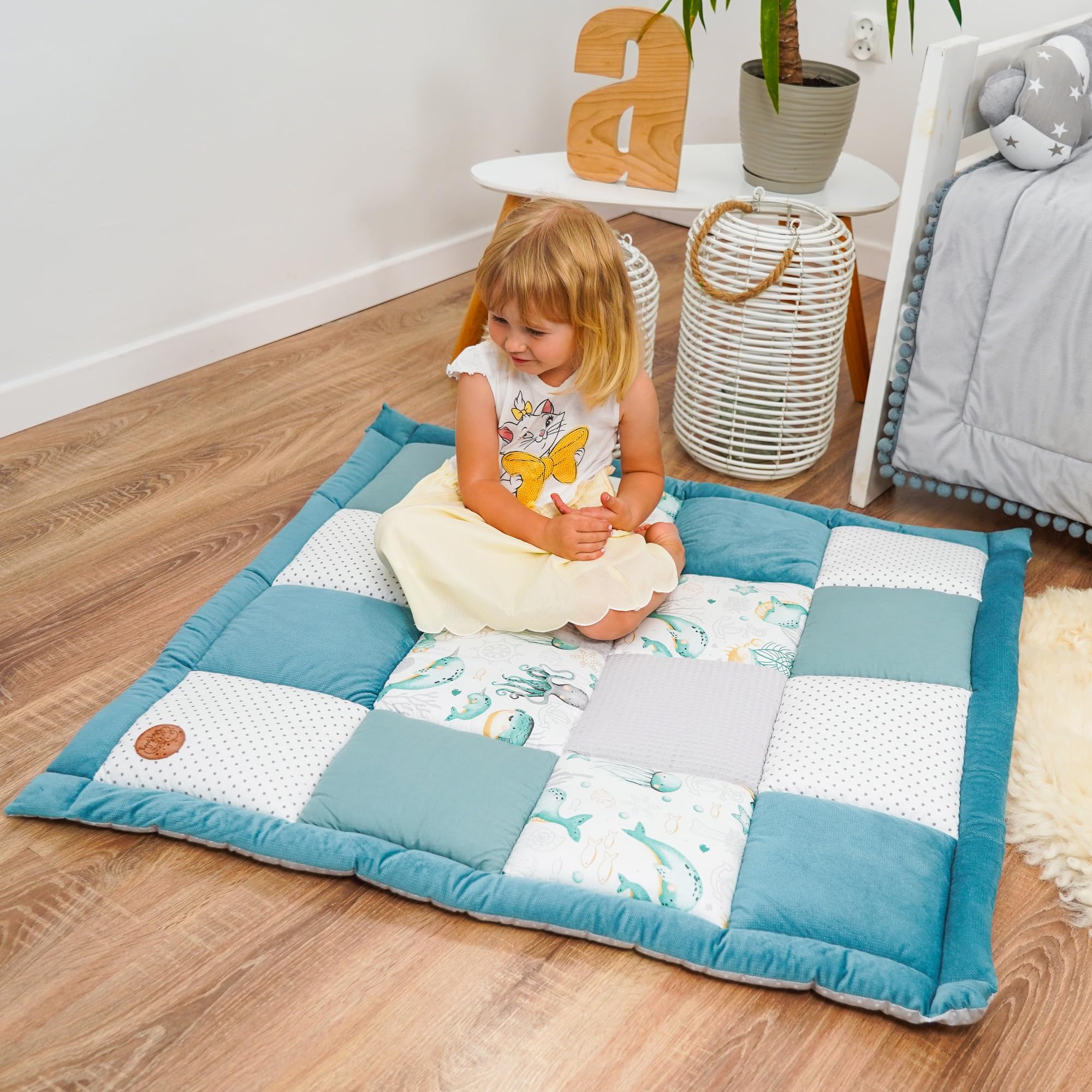 Mata dla niemowlęcia Aksamitna mata do zabawy 100×100 cm – PATCHWORK W