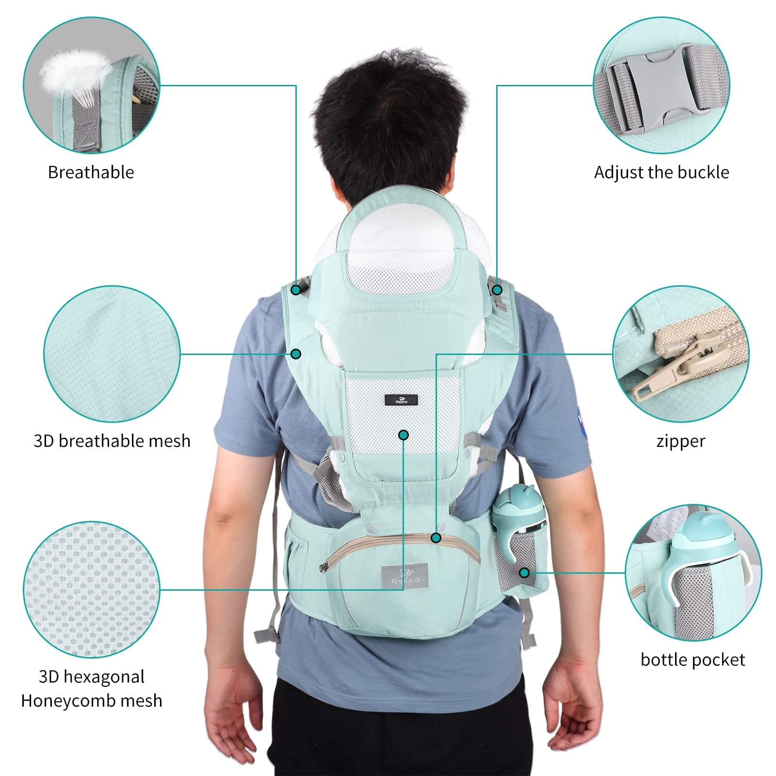 • Lekki nosidełko dla małych dzieci zapewnia różne pozycje noszenia i posiada dużą przestrzeń pod bioder 3D na przybory dla niemowląt, dzięki czemu można go wyjść z domu bez torby do przewijania