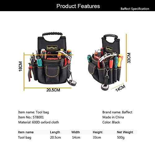Podsumowując, Baffect Torba dla elektryka 20 kieszeni płócienna kieszeń na narzędzia pasek z regulowanym nylonowym paskiem wytrzymała profesjonalna torba na narzędzia dla elektryków to niezastąpiony produkt dla każdego profesjonalnego elektryka. Dzięki swojej pojemności, wytrzymałości i funkcjonalności, ta torba zapewnia wygodę i organizację narzędzi, co przekłada się na efektywność pracy i oszczędność czasu.